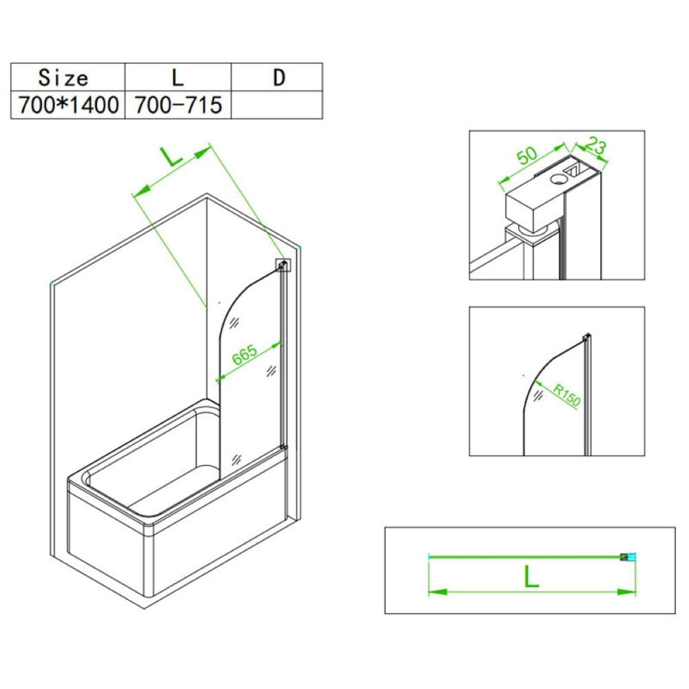 Zestaw zawiera: szybę z technologią NANO GLASS o grubości 6 mm, aluminiowy profil z regulacją 15 mm (możliwość niwelacji krzywizny ścian), komplet śrub montażowych, stalowe zawiasy oraz uszczelkę nawannową.