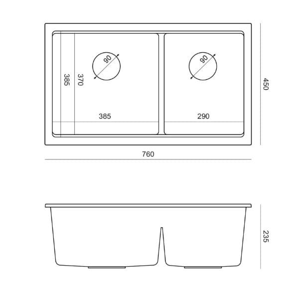 Długość x szerokość zlewozmywaka  760 mm x 450 mm