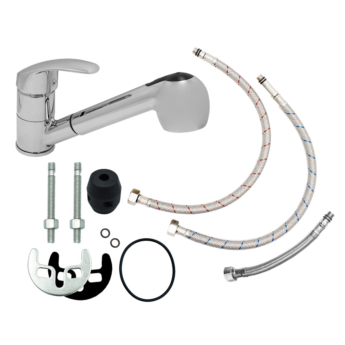 Zestaw Epir70 - zlew podwieszany czarny - bateria kuchenna - syfon