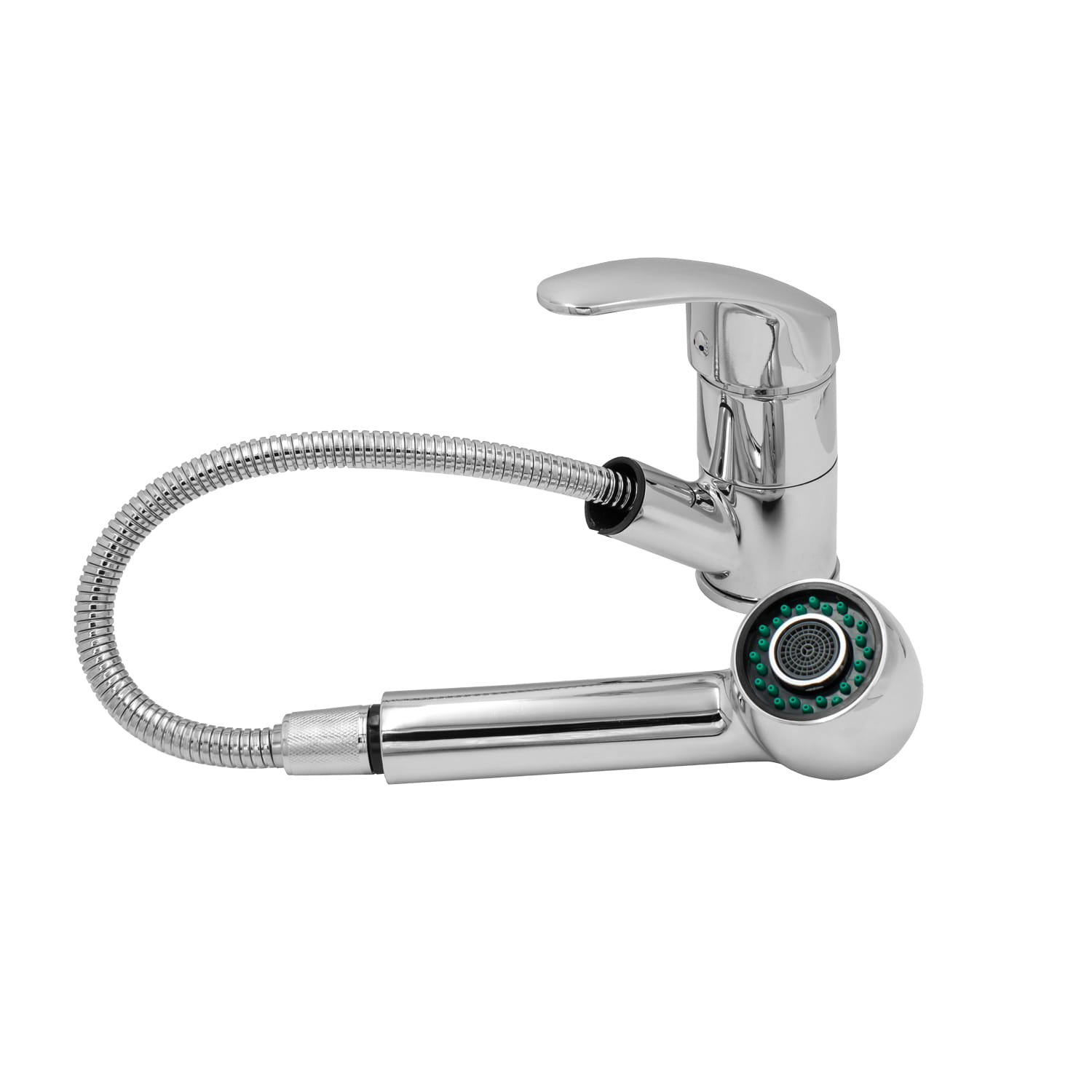 ASET bateria kuchenna z wyciąganą wylewką o wysokiej jakości, wykonana z mosiądzu, w kolorze chrom. Słuchawka wykonana z tworzywa PCV. Powłoka baterii odporna na przebarwienia i wysoką temperaturę. Ceramiczna głowica 40 mm. Obrotowa, wyciągana wylewka. Dwa rodzaje strumienia wody. System anty - kamień, zapobiegający odkładaniu się kamienia na słuchawce. Perlator napowietrzający m24. Standardowy otwór montażowy 35 mm.