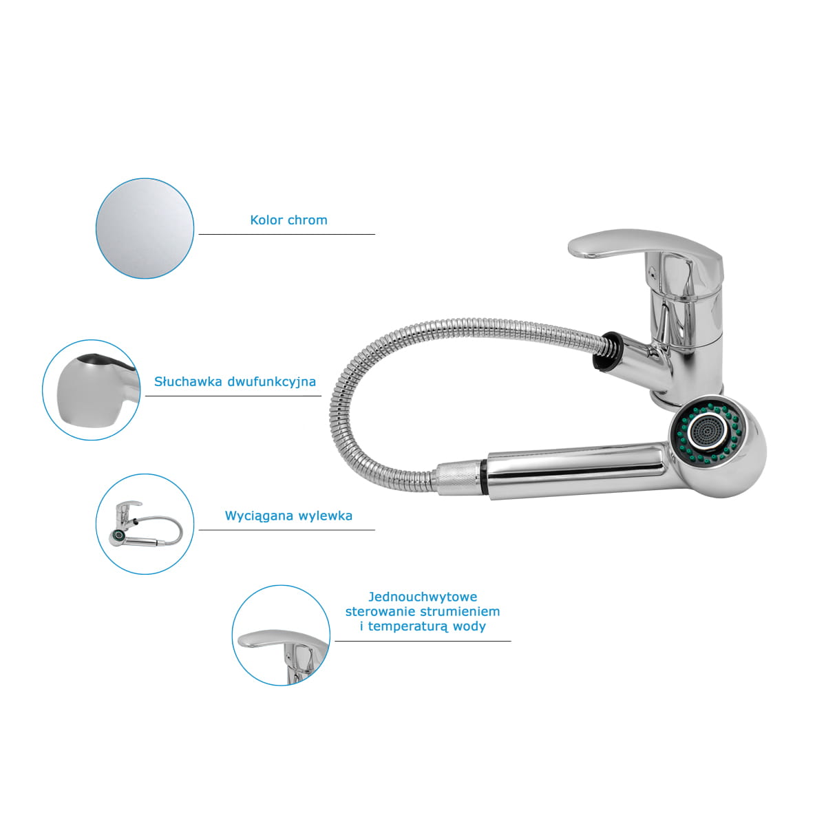 Spiral chrom bateria kuchenna z wyciąganą wylewką