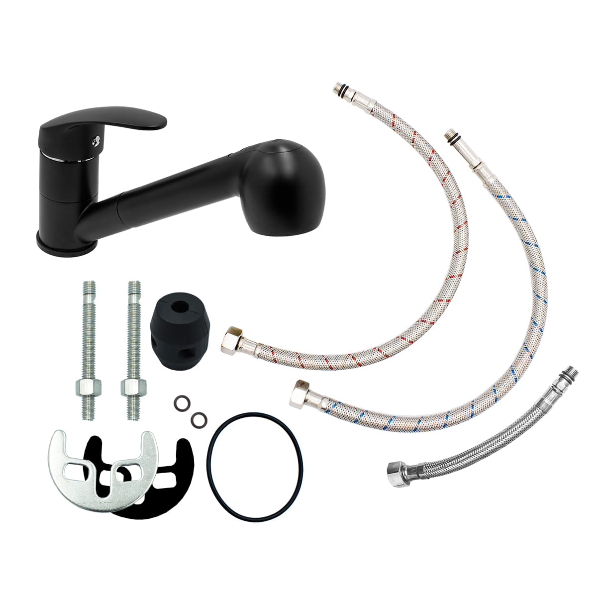 Zestaw Epir70 - zlew podwieszany czarny - bateria kuchenna - syfon