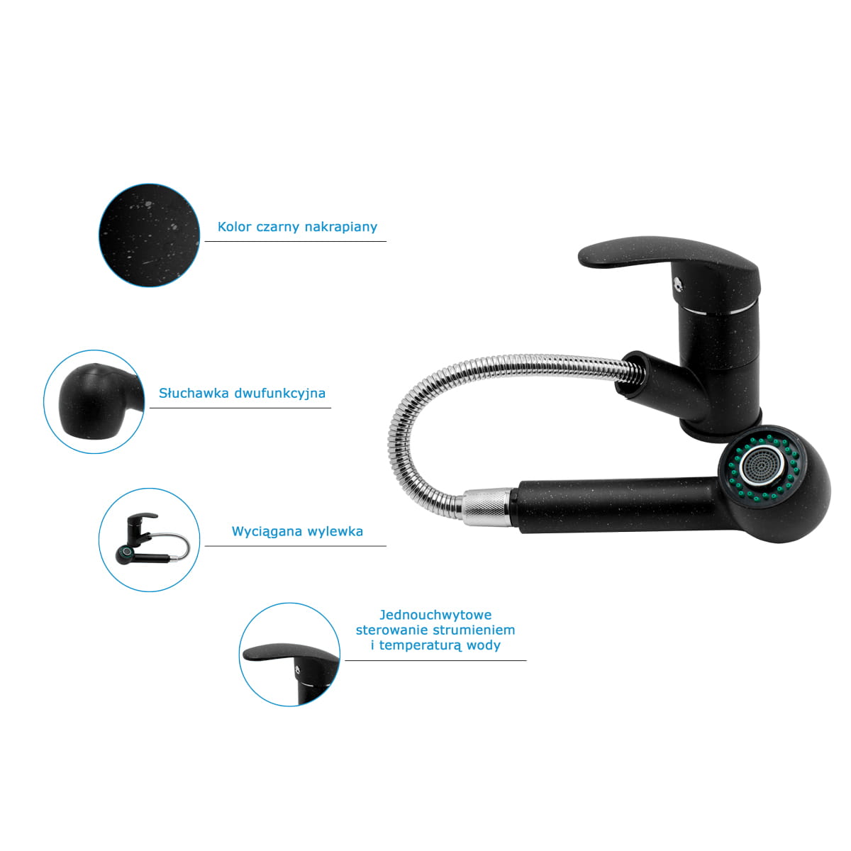 Bateria EBRA kuchenna wyciągana 2 strumienie wyciągana wylewka granit czarna nakrapiana