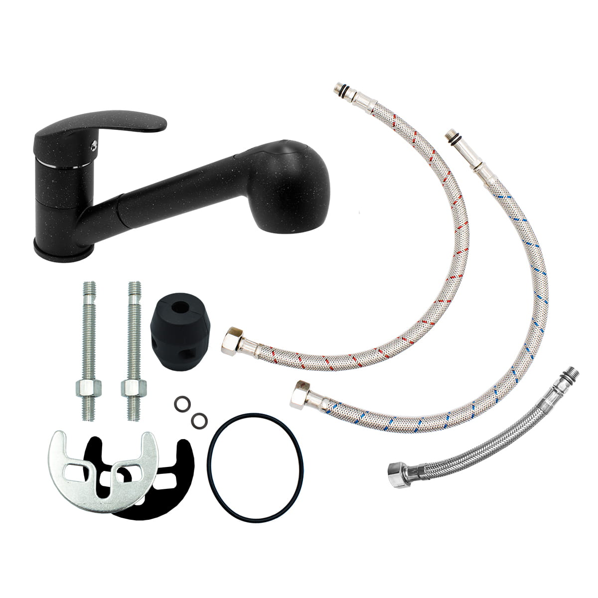 Zestaw Epir70 - zlew podwieszany czarny - bateria kuchenna - syfon