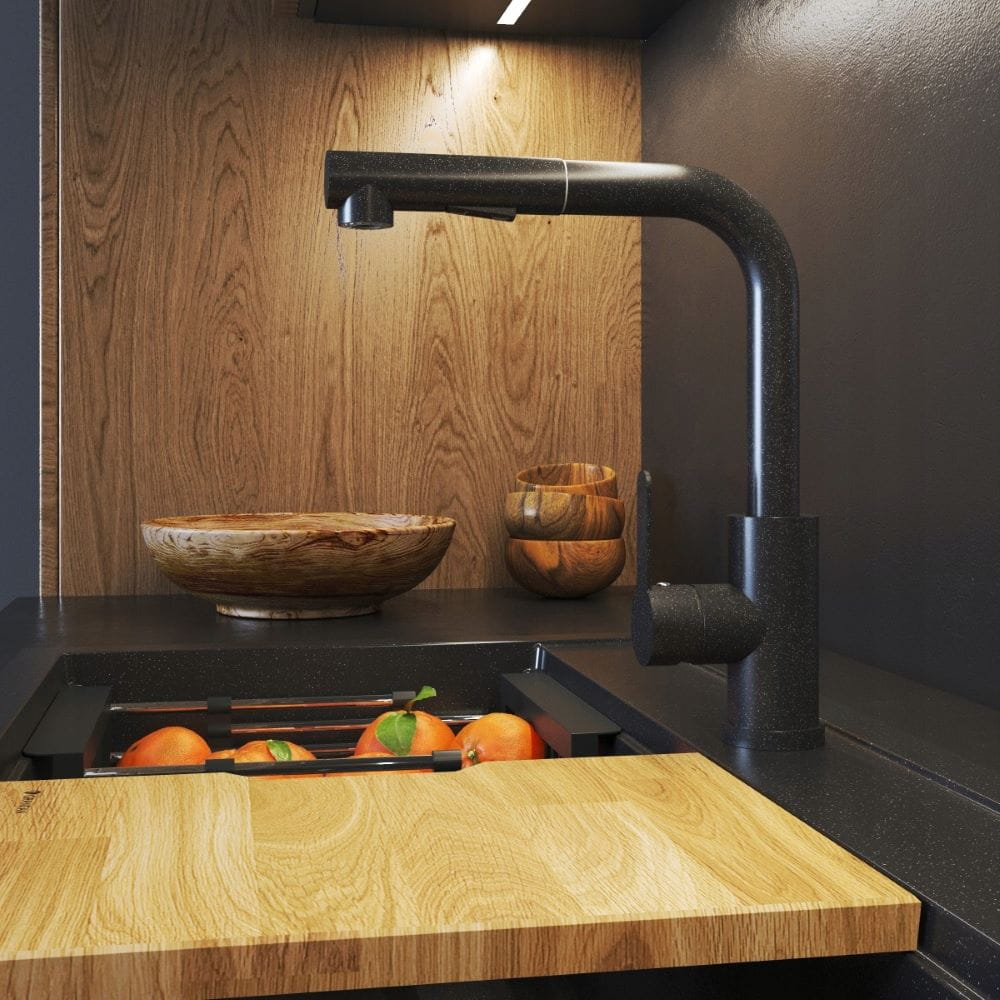 T1000 SLIM granit bateria kuchenna z wyciąganą wylewką