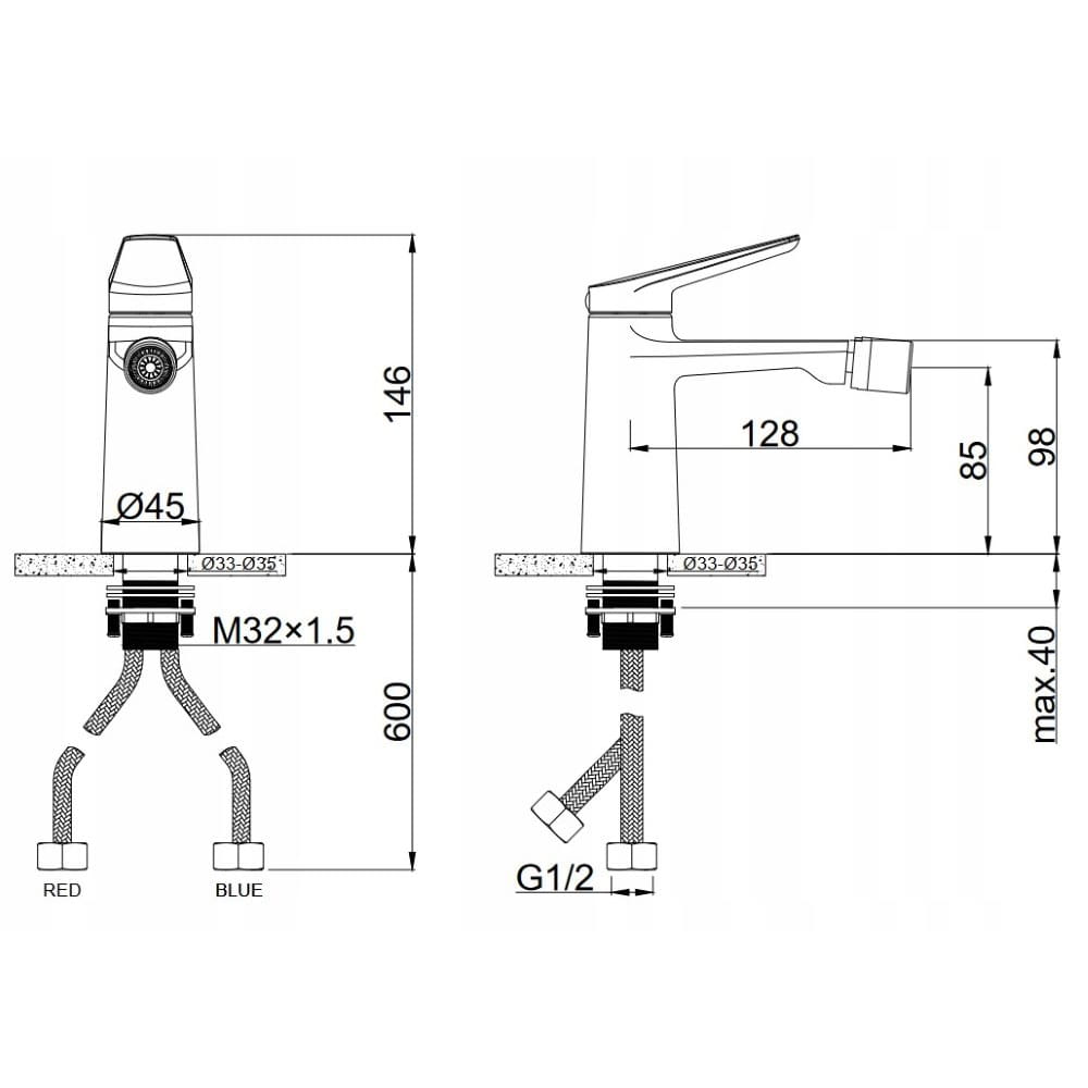 | Zasięg wylewki od środka baterii | 128 mm |