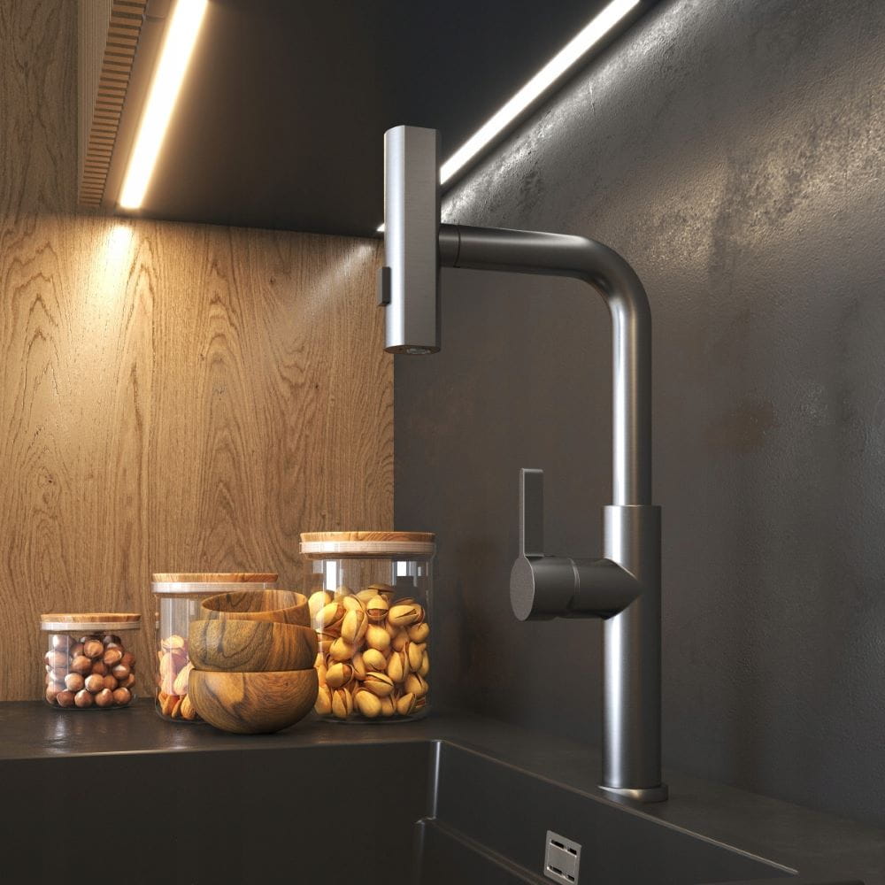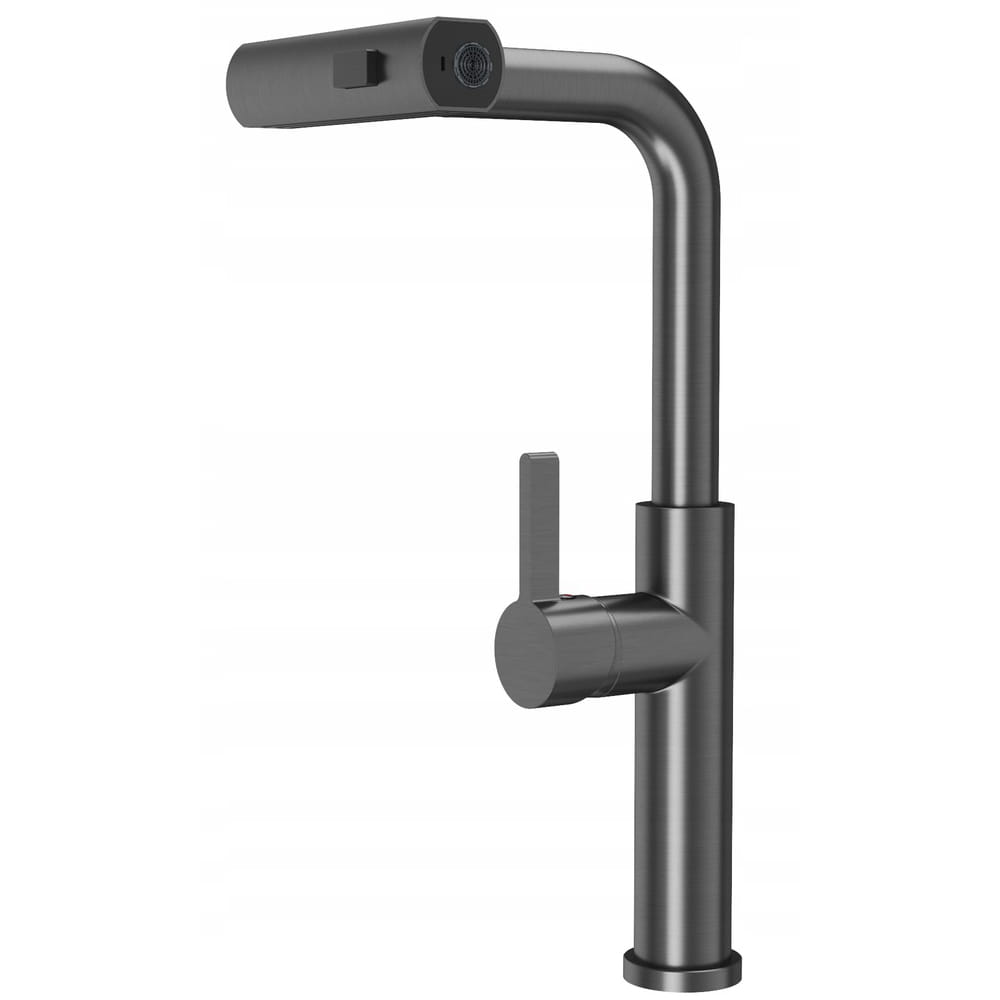 Giro to ultranowoczesny kran kuchenny, który wyróżnia się ciekawym designem i ponadprzeciętną funkcjonalnością. Bateria wyposażona jest wyciąganą, obrotową wylewkę, której ułożenie zależy od wybranego strumienia wody. Model posiada 3-funkcyjną słuchawkę, która w zależności od potrzeb może emitować standardowy strumień, szeroki strumień deszczownicy, a także lżejszą mgiełkę. Nietuzinkowy wygląd kranu sprawia, że pasuje on do stylowych przestrzeni kuchennych, w którym będzie modnym i pożytecznym dodatkiem. Głowica ceramiczna. Powłoka odporna na wysoką temperaturę i przebarwienia.