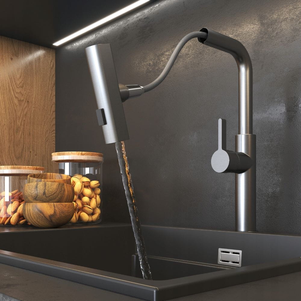 Bateria kuchenna Giro z wyciąganą wylewką gun grey 3 strumienie wody