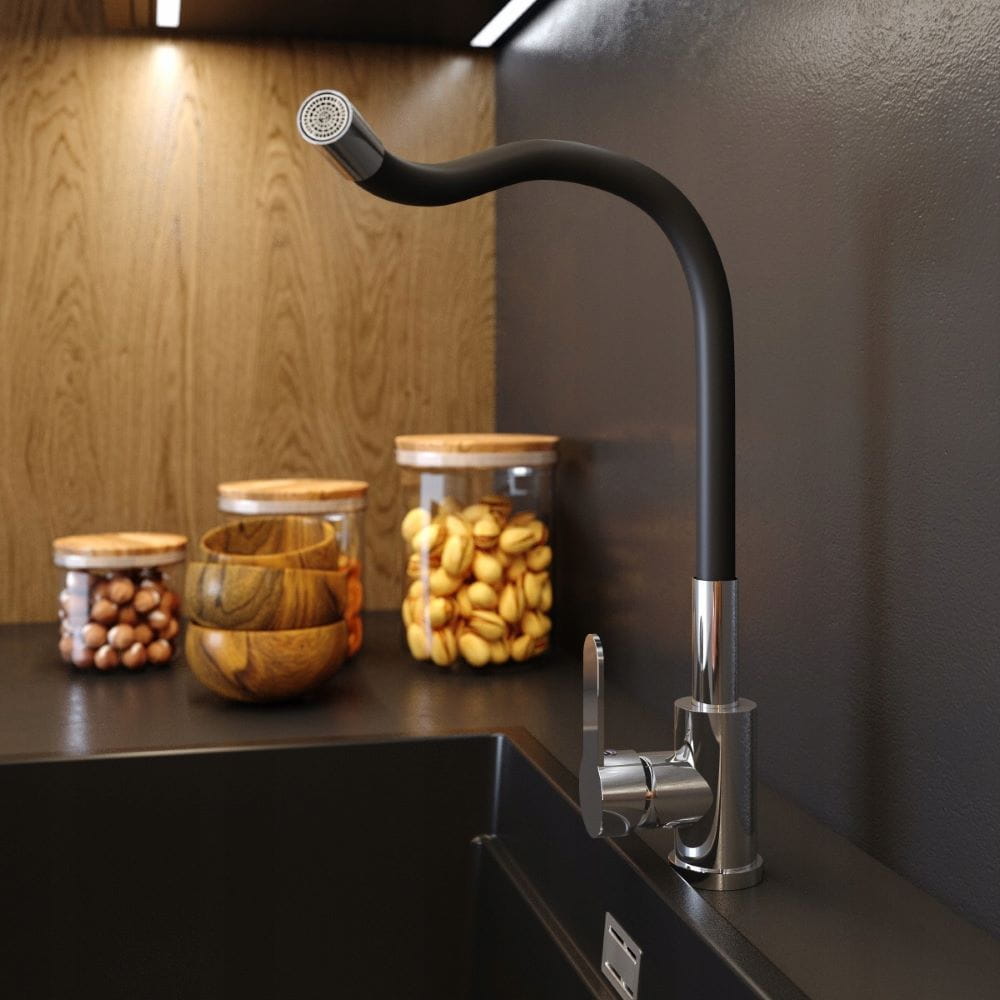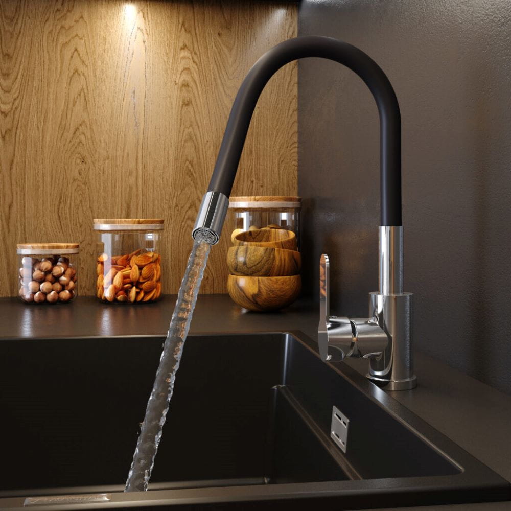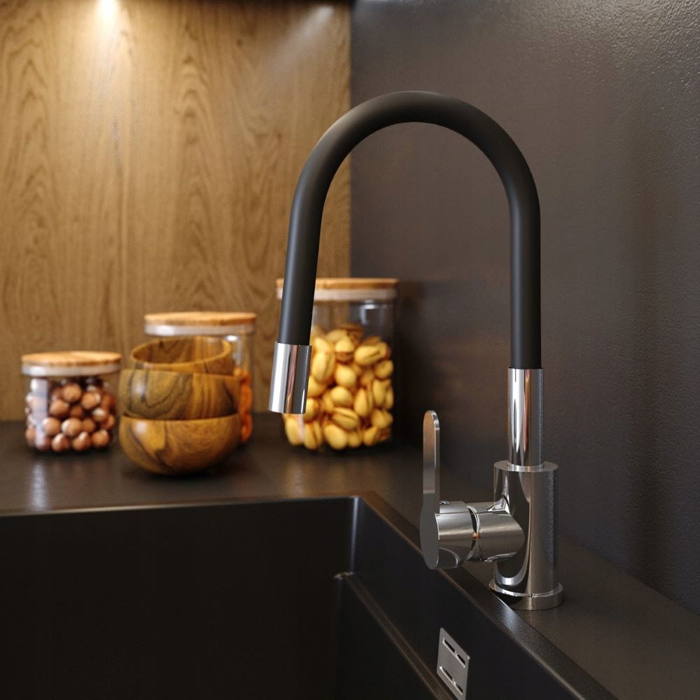 Bateria kuchenna Vetta elastyczna giętka wylewka wysoka do umywalki czarna