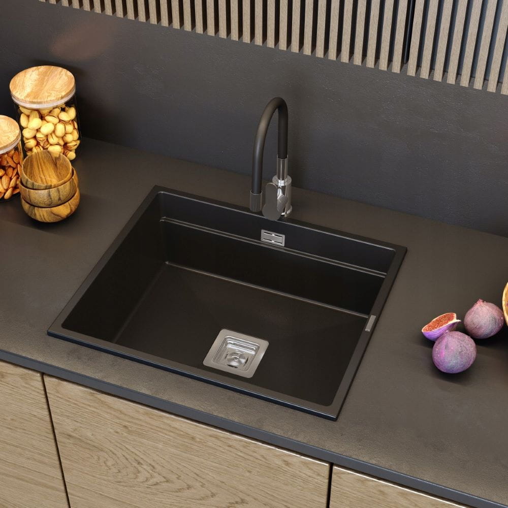 Zestaw Milano - zlewozmywak granitowy czarny - bateria kuchenna - mata - syfon