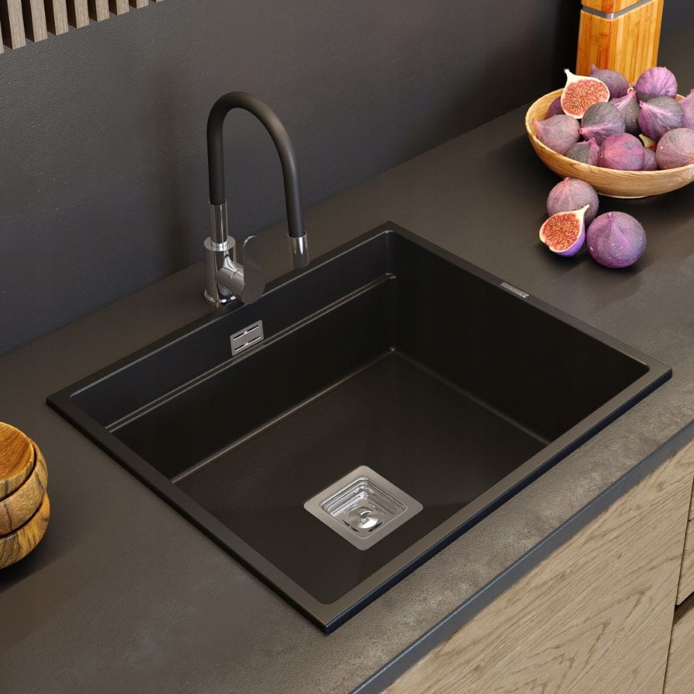 Zlewozmywak granitowy czarny - bateria kuchenna Grado - koszyk - zestaw Nero