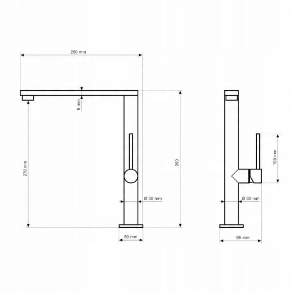 Długość wylewki 250 mm