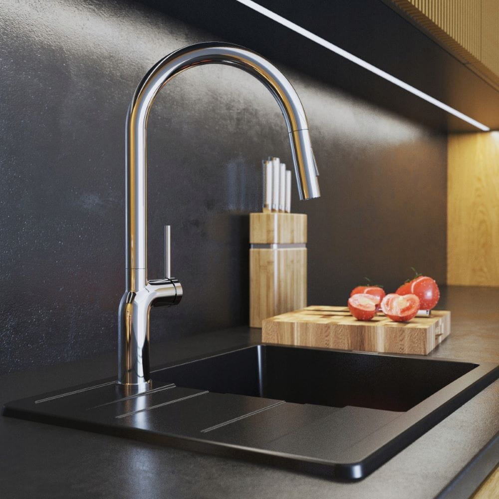 OXI to praktyczna bateria kuchenna, która dzięki swojemu nowoczesnemu designowi oraz uniwersalnemu charakterowi świetnie komponuje się z każdą aranżacją kuchni – zarówno klasyczną, jak i nowoczesną. Charakterystyczny kształt łukowatej wylewki oraz smukła dźwignia regulacji podkreślają jej nowoczesny charakter. Wyciągana wylewka zwiększa wygodę użytkowania, a dwufunkcyjna głowica pozwala dopasować strumień wody do bieżących potrzeb – od precyzyjnego nalewania do funkcji prysznicowej. Idealne połączenie estetyki z praktycznością!