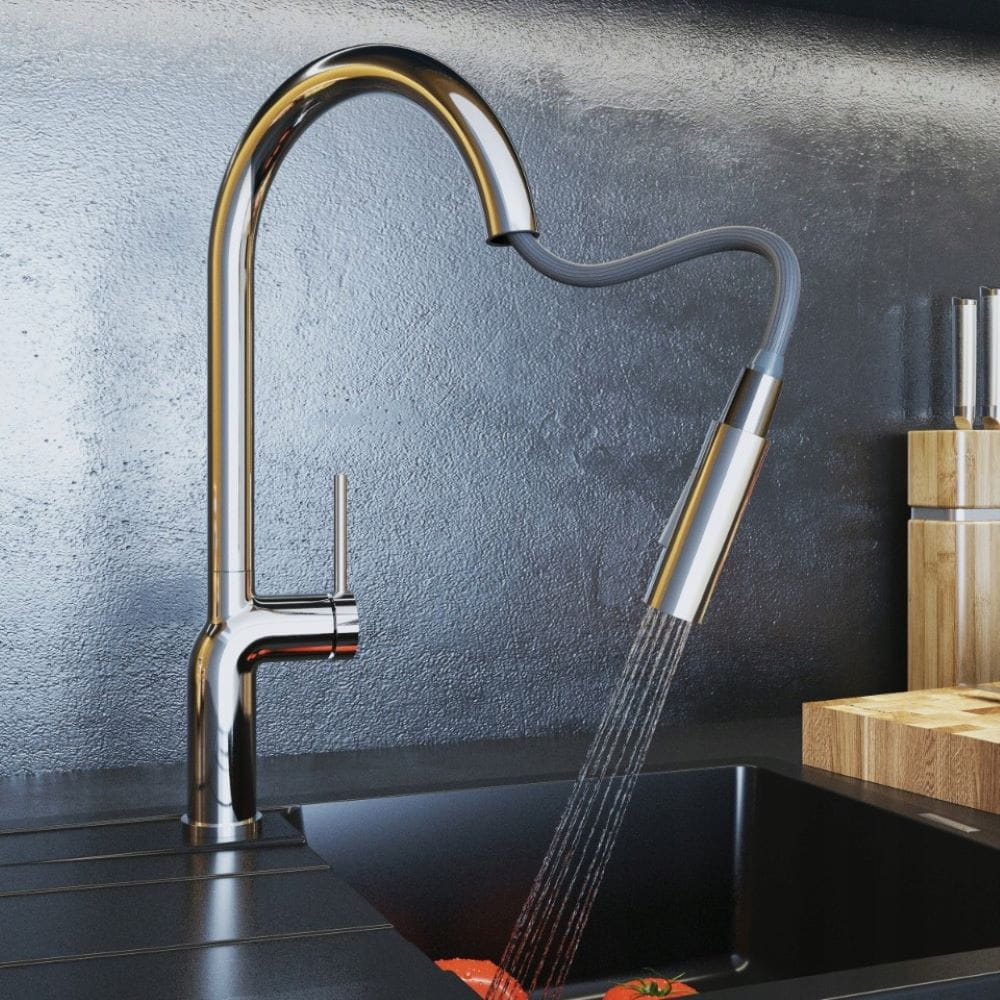 Bateria kuchenna Giro z wyciąganą wylewką chrom 3 strumienie wody