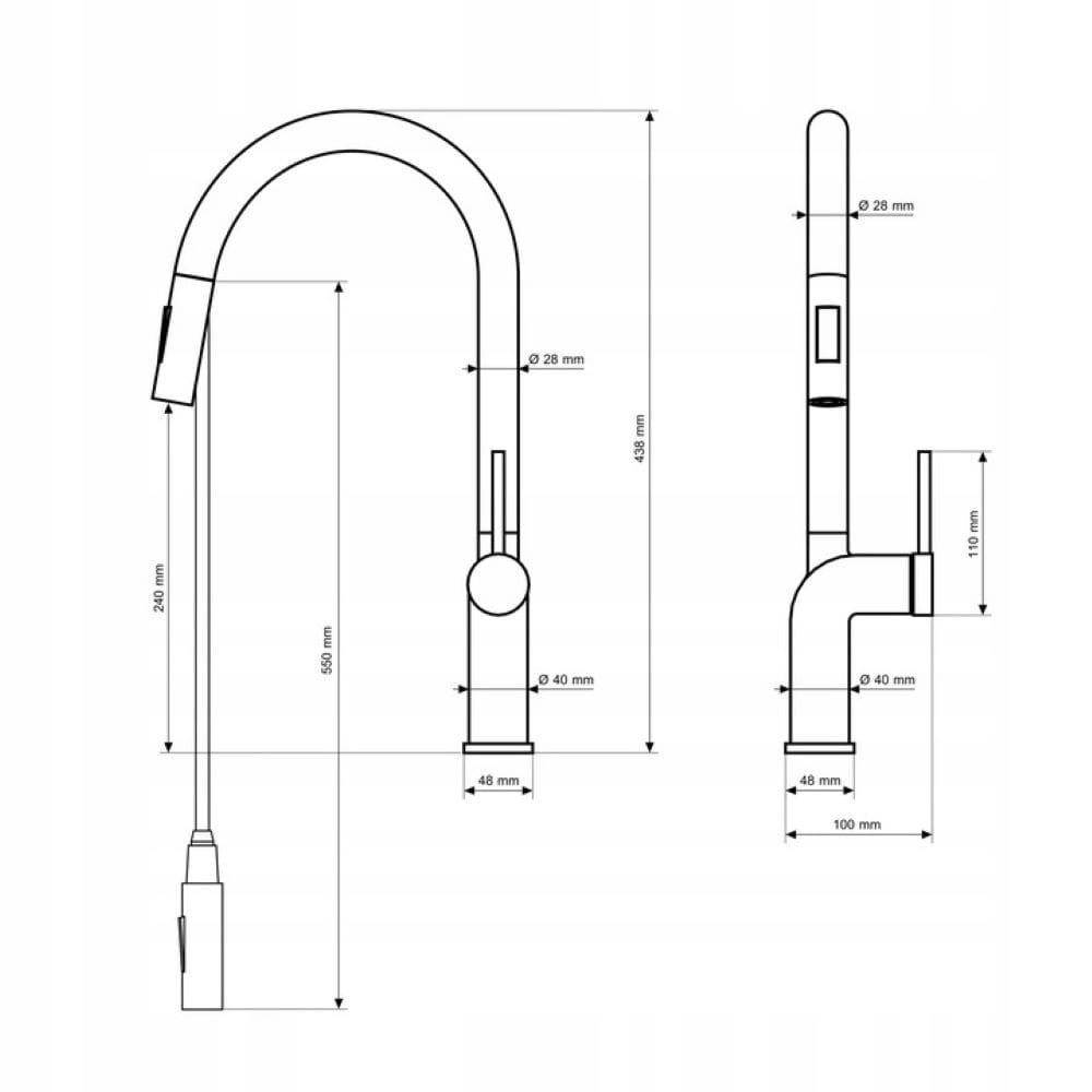 Spiral chrom bateria kuchenna z wyciąganą wylewką