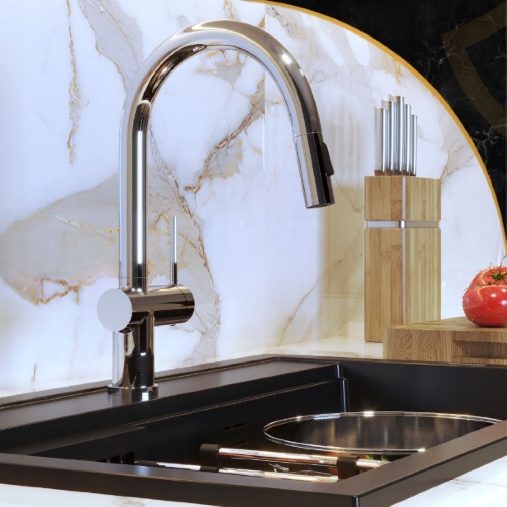Odkryj wyjątkowy komfort pracy w kuchni dzięki nowoczesnej baterii kuchennej NAYA. Bateria została zaprojektowana z myślą o codziennym użytkowaniu – trwała, wygodna i łatwa w czyszczeniu. To połączenie stylu i praktyczności, które docenią zarówno miłośnicy designu, jak i ci, którzy szukają rozwiązań ułatwiających pracę w kuchni. Montaż do blatu o maksymalnej grubości 3 cm.