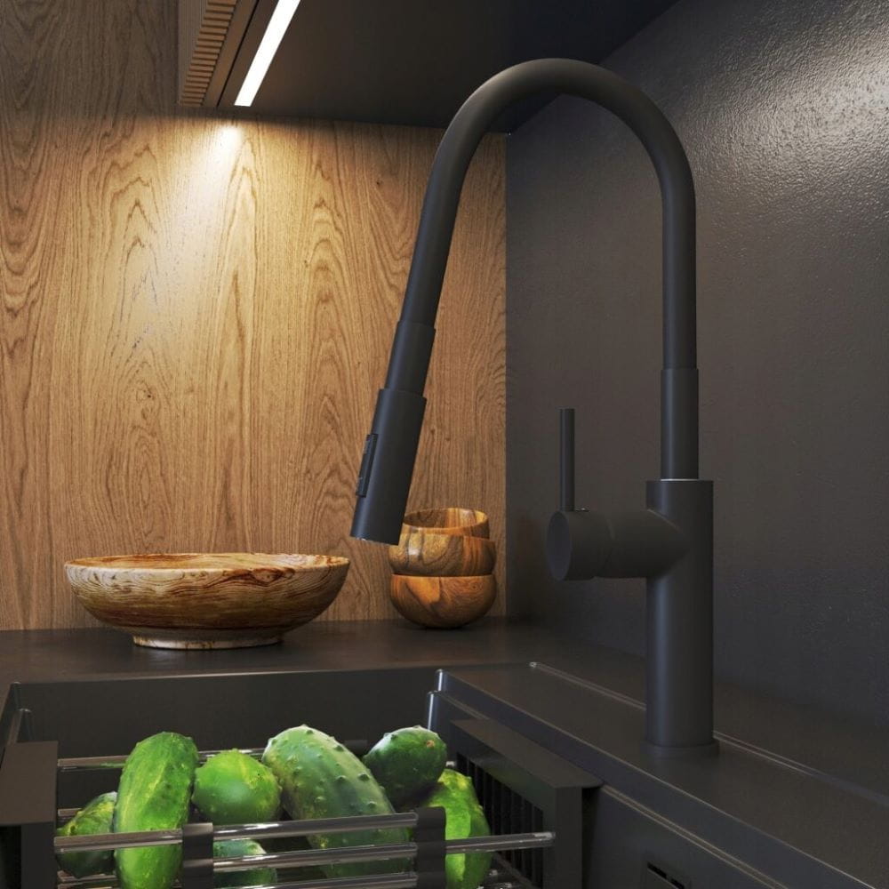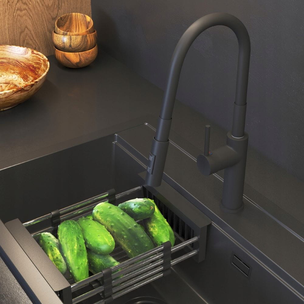 Bateria kuchenna czarna z wyciąganą wylewką Oxi