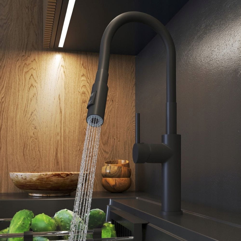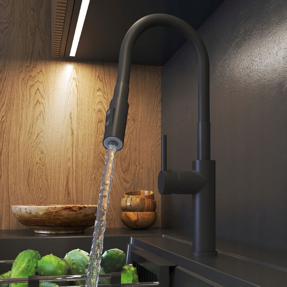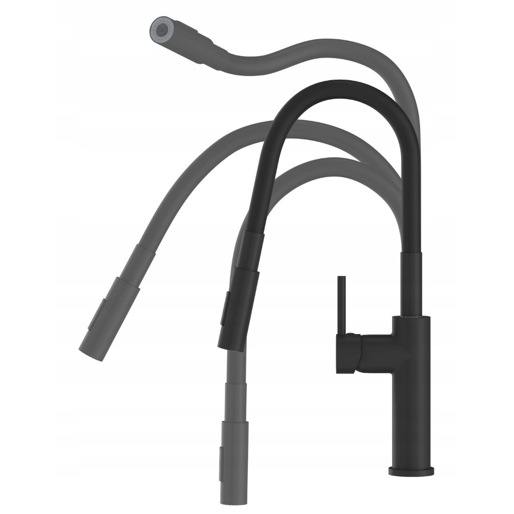Bateria kuchenna Giro z wyciąganą wylewką czarna 3 strumienie wody