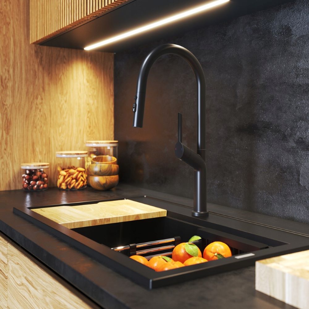 Bateria kuchenna czarna Nokka wyciągana wylewka