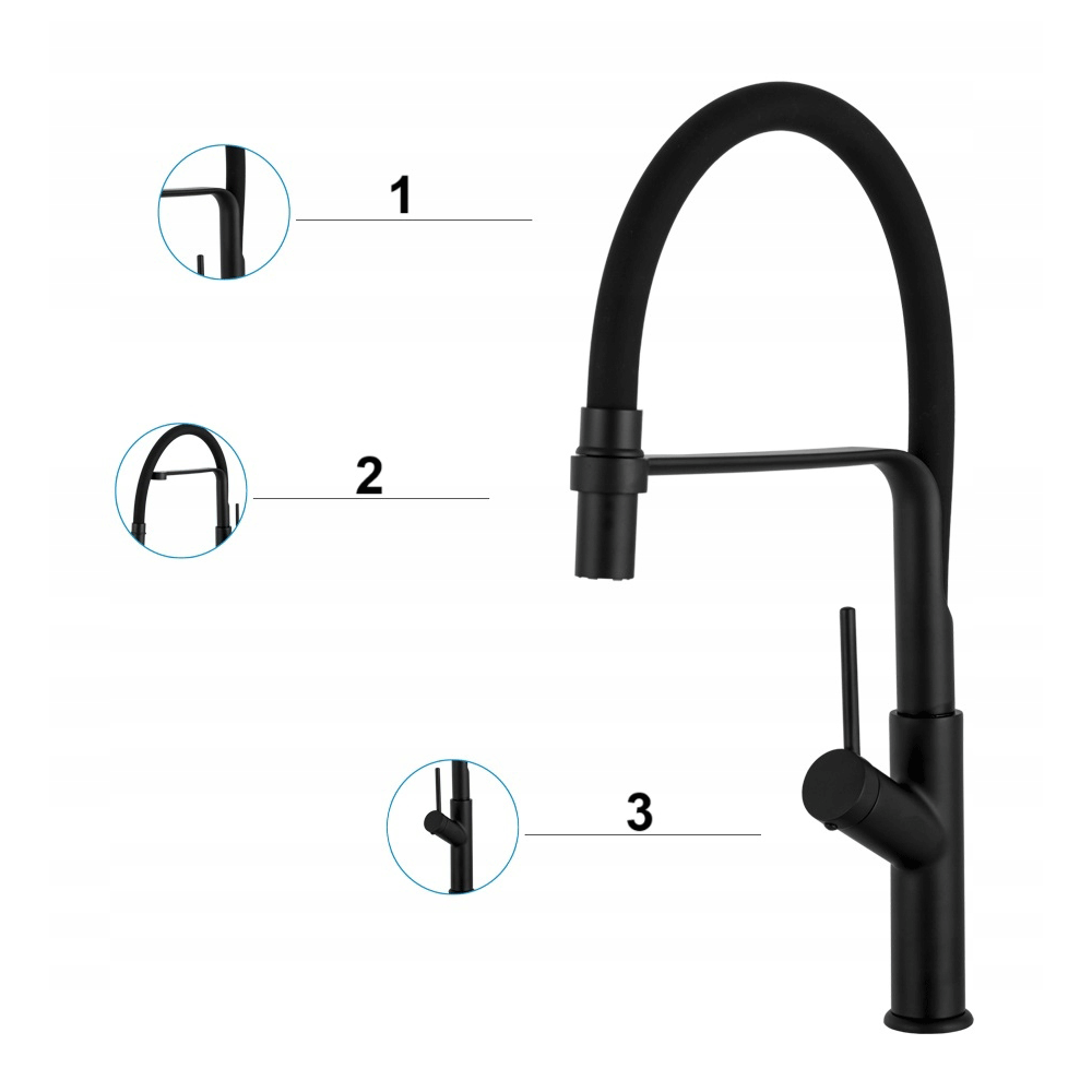 Bateria kuchenna Giro z wyciąganą wylewką czarna 3 strumienie wody