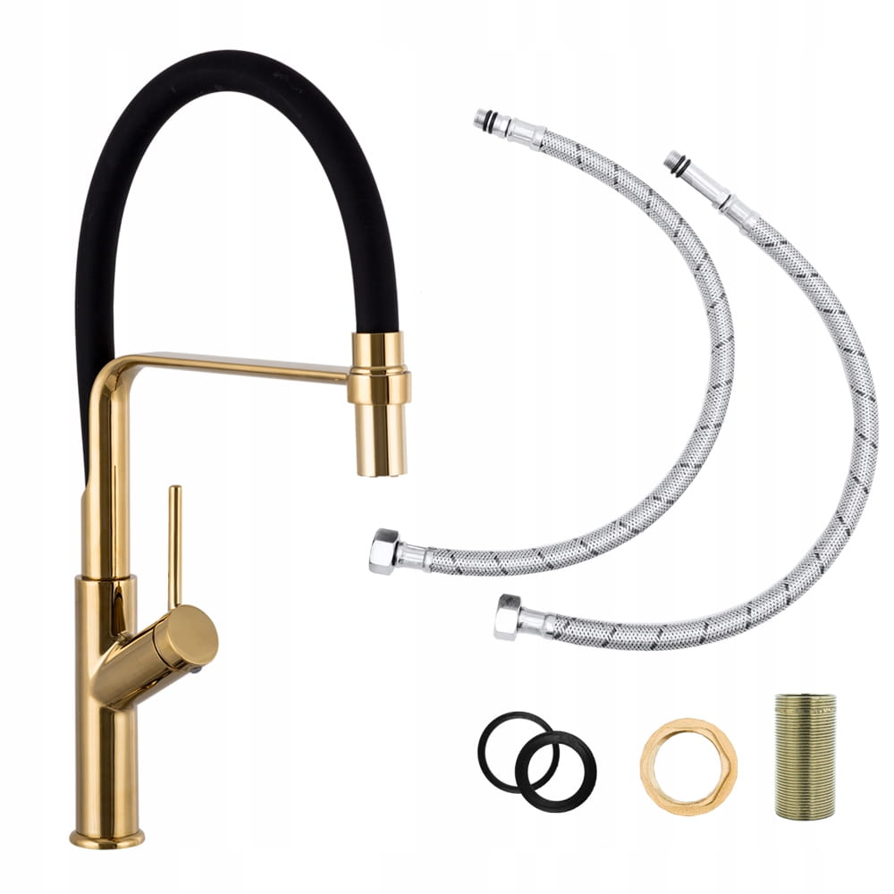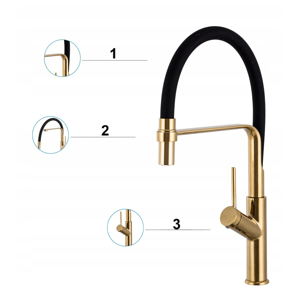 Spiral złota bateria kuchenna z wyciąganą wylewką