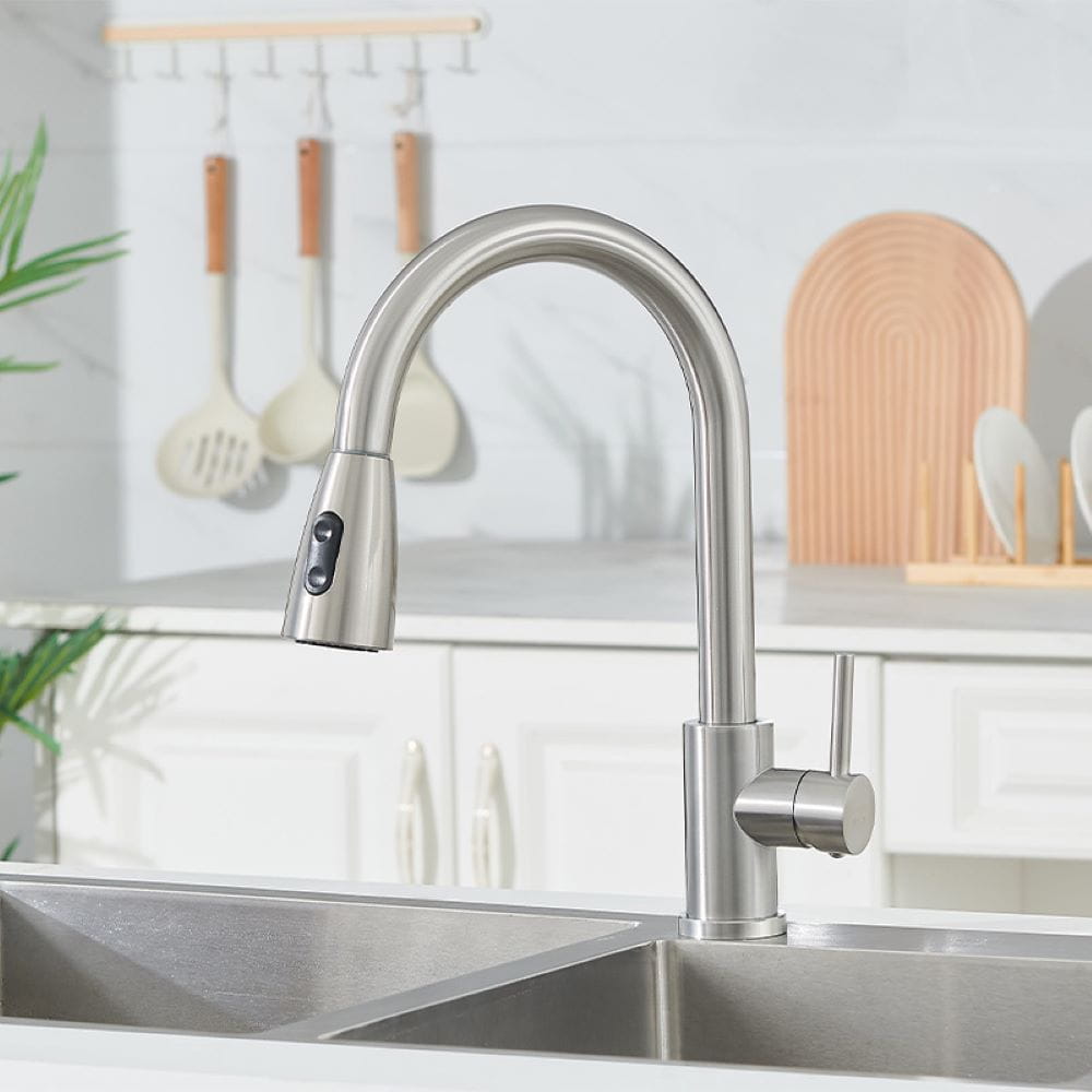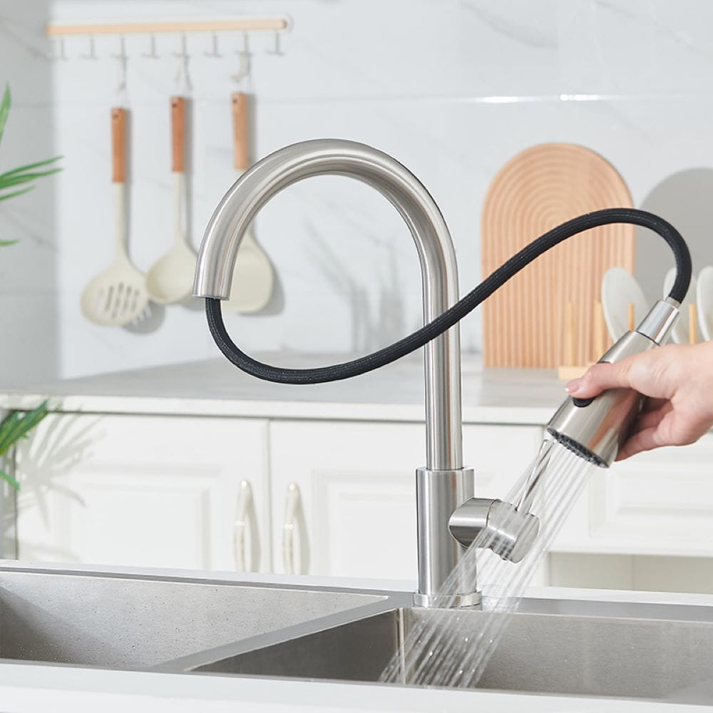 Bateria oferuje dwa tryby pracy – klasyczny oraz prysznicowy, co pozwala precyzyjnie dopasować rodzaj strumienia do wykonywanej czynności. Dzięki temu mycie naczyń, płukanie warzyw czy czyszczenie zlewu staje się bardziej komfortowe i efektywne, a obsługa baterii intuicyjna i wygodna.
