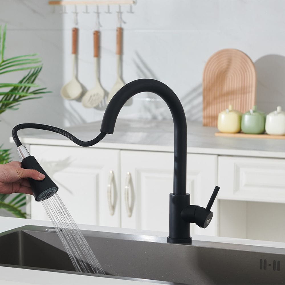 Bateria kuchenna nablatowa Hydrosan to połączenie eleganckiego wzornictwa i codziennej praktyczności, które doskonale sprawdzi się w każdej nowoczesnej kuchni. Wyposażona w obrotową, wyciąganą wylewkę 360°, zapewnia maksymalną swobodę ruchu i wygodę podczas zmywania naczyń, płukania warzyw czy napełniania większych garnków. Dzięki prostej, a zarazem efektownej formie oraz czarnemu wykończeniu, bateria z łatwością dopasowuje się zarówno do minimalistycznych, jak i bardziej klasycznych aranżacji. Solidna konstrukcja wykonana z trwałego stopu stali nierdzewnej, ceramiczna głowica oraz odporna na wysoką temperaturę powłoka gwarantują niezawodne działanie przez długie lata.