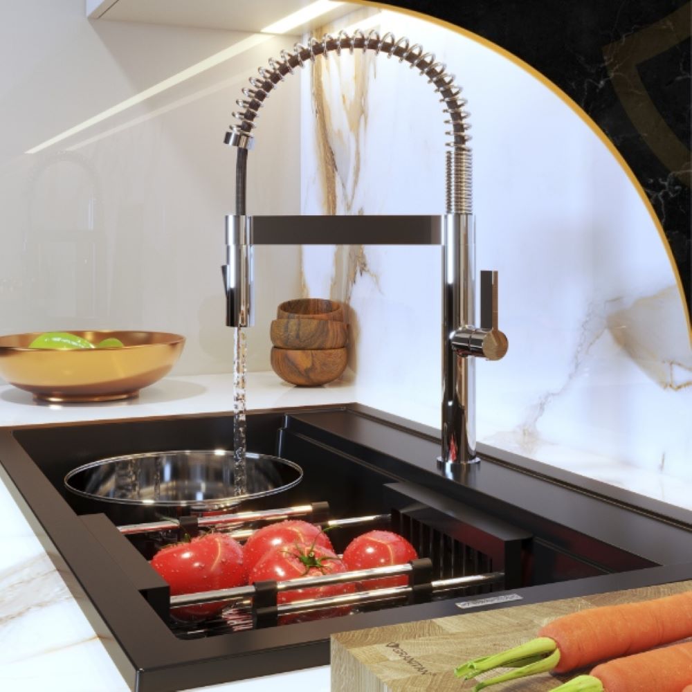 Odkryj wyjątkowy komfort pracy w kuchni dzięki nowoczesnej baterii kuchennej ELARA. Bateria została zaprojektowana z myślą o codziennym użytkowaniu – trwała, wygodna i łatwa w czyszczeniu. To połączenie stylu i praktyczności, które docenią zarówno miłośnicy designu, jak i ci, którzy szukają rozwiązań ułatwiających pracę w kuchni. Nasze baterie kuchenne przeznaczone są do montażu w blacie o maksymalnej grubości 3 cm.