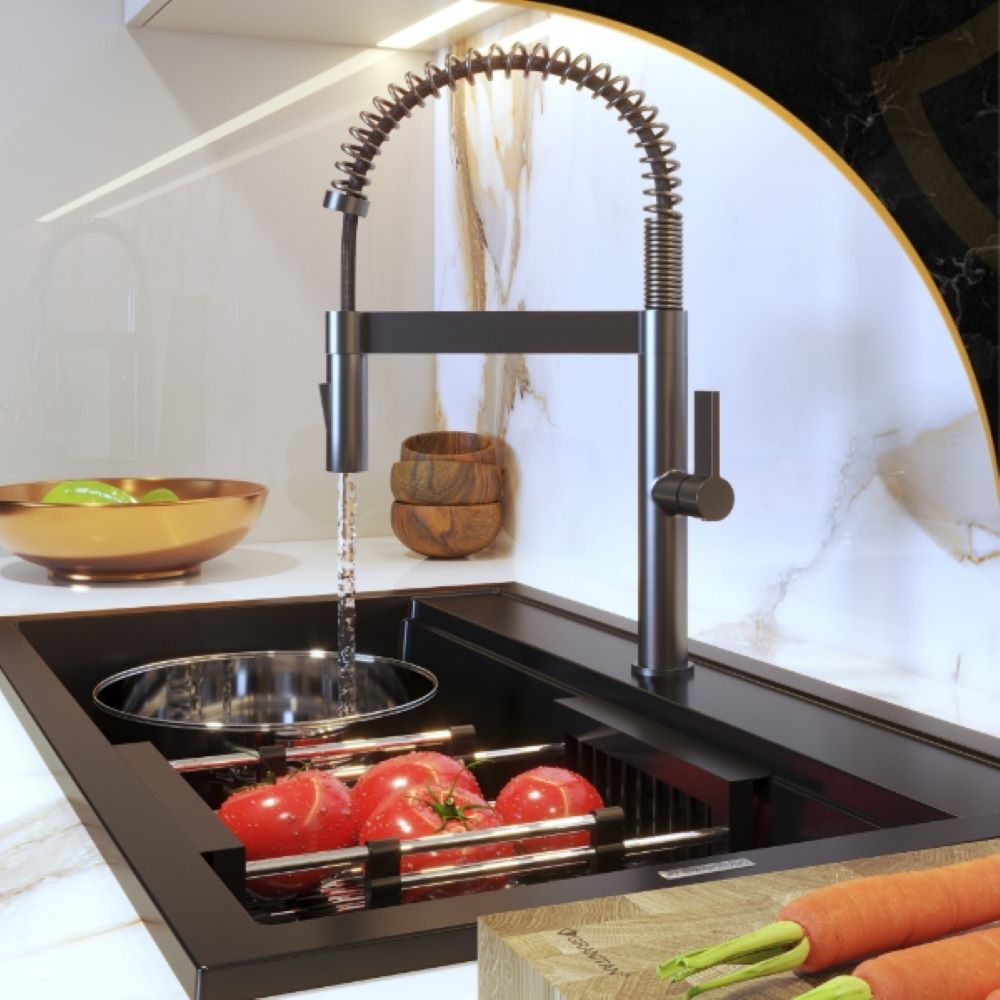 Bateria kuchenna spiralna wyciągana wylewka wysoka gun grey Elara