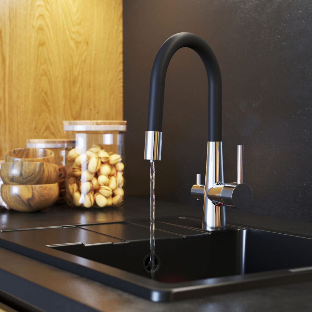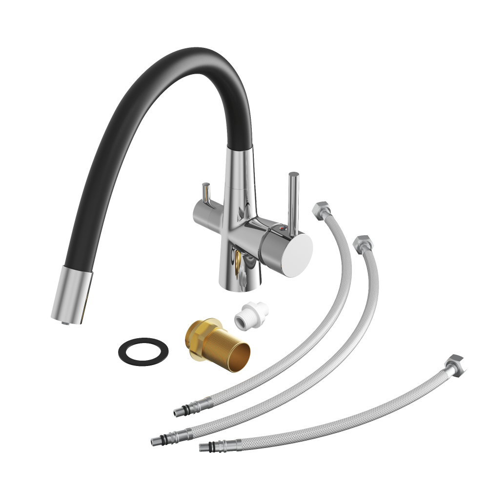 Bateria kuchenna trójdrożna elastyczny kran do filtra wody Fluo czarna