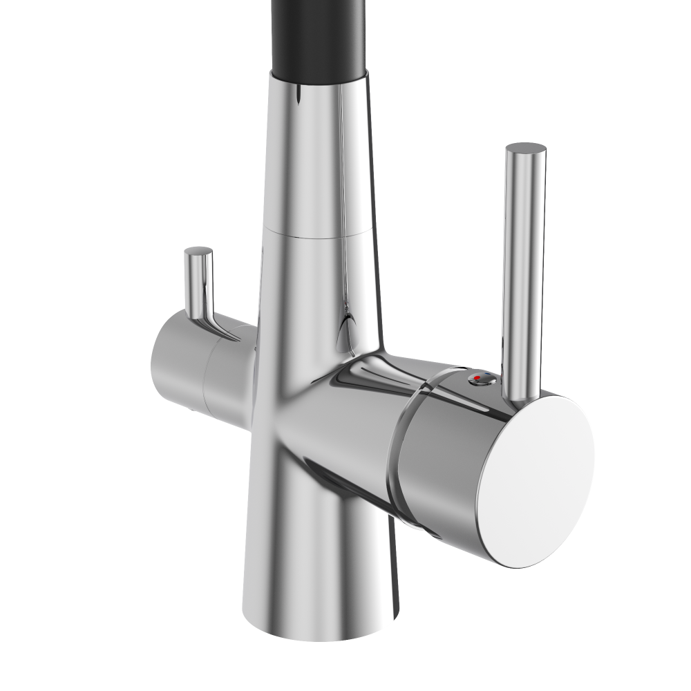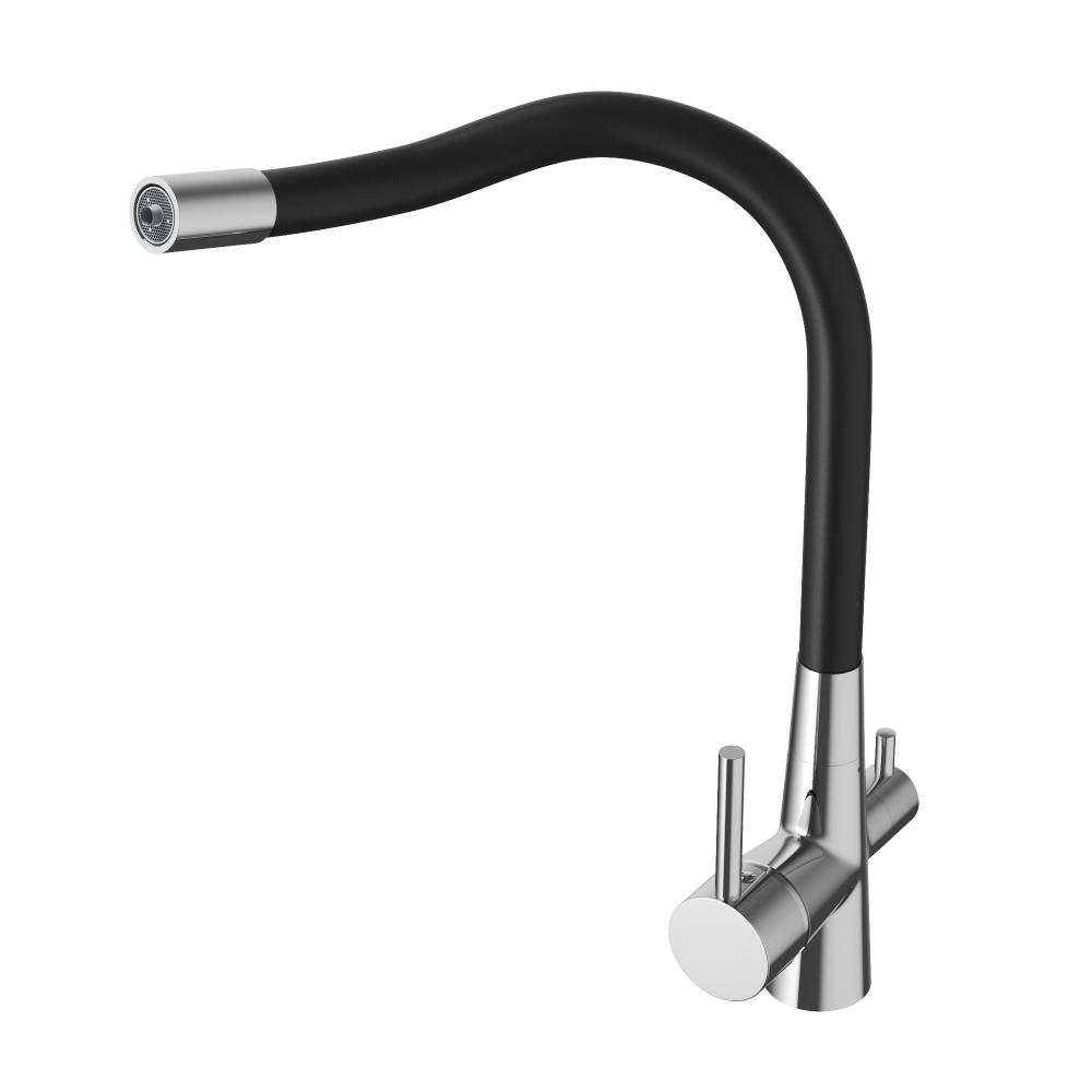 Bateria trójdrożna to innowacyjne rozwiązanie, które łączy funkcjonalność i estetykę, zapewniając wygodę korzystania z wody w kuchni. Wyposażona jest w elastyczną, giętką wylewkę, która pozwala na łatwe manewrowanie strumieniem wody. To szczególnie praktyczne rozwiązanie podczas mycia dużych naczyń czy czyszczenia zlewu. Obsługuje wodę użytkową i filtrowaną, eliminując konieczność dodatkowego kranu.