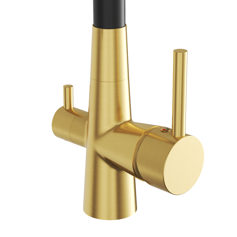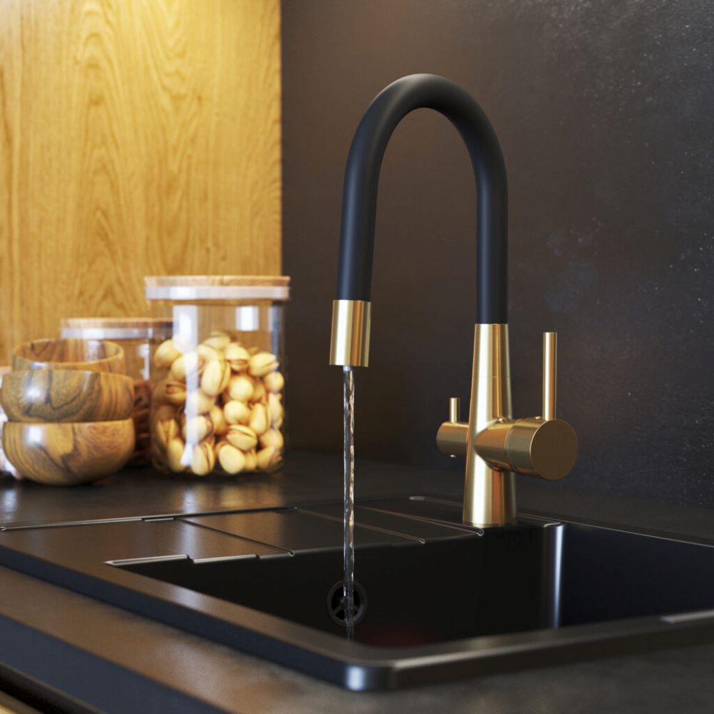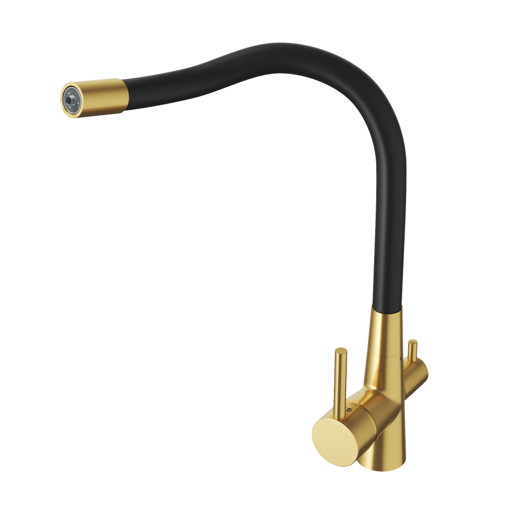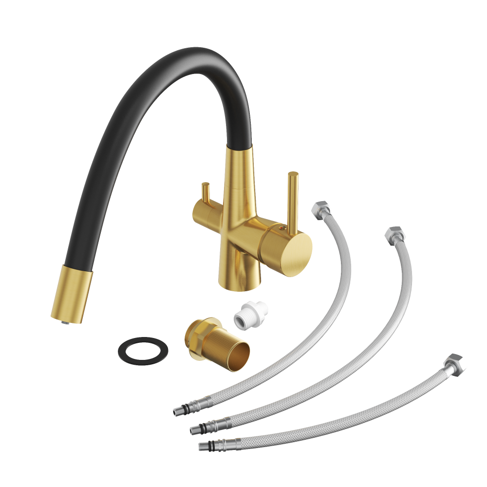 Bateria kuchenna trójdrożna elastyczny kran do filtra wody Fluo złoto szczotkowane