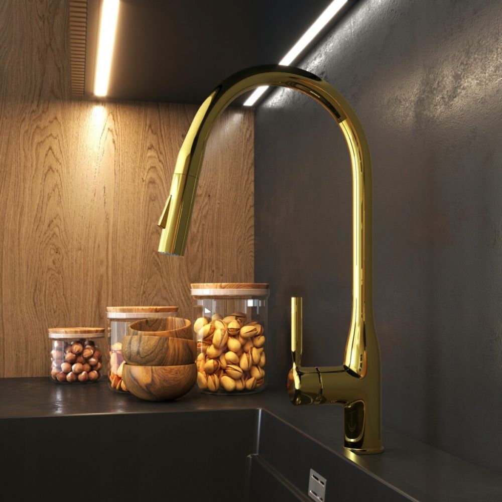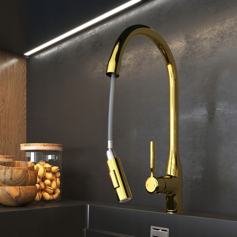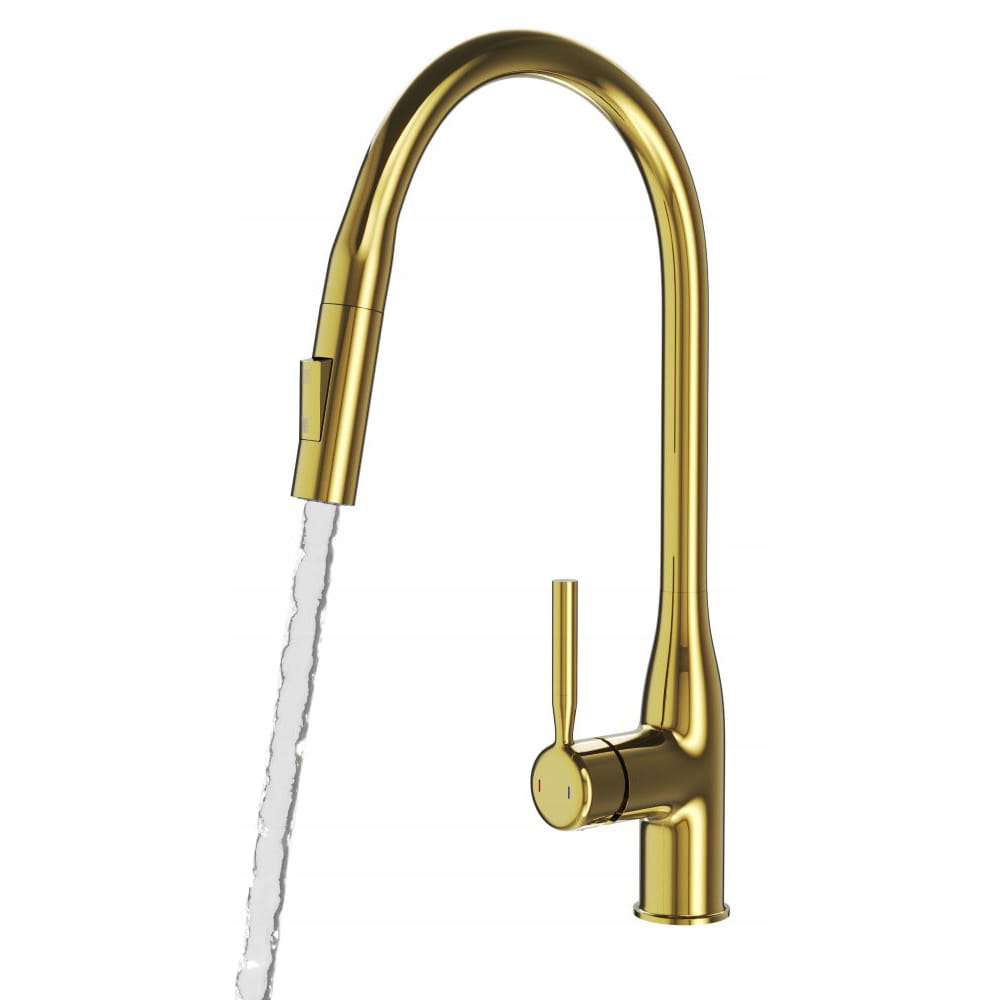 Bateria kuchenna wyciągana wylewka złota kran dwufunkcyjny nowoczesny Fossa