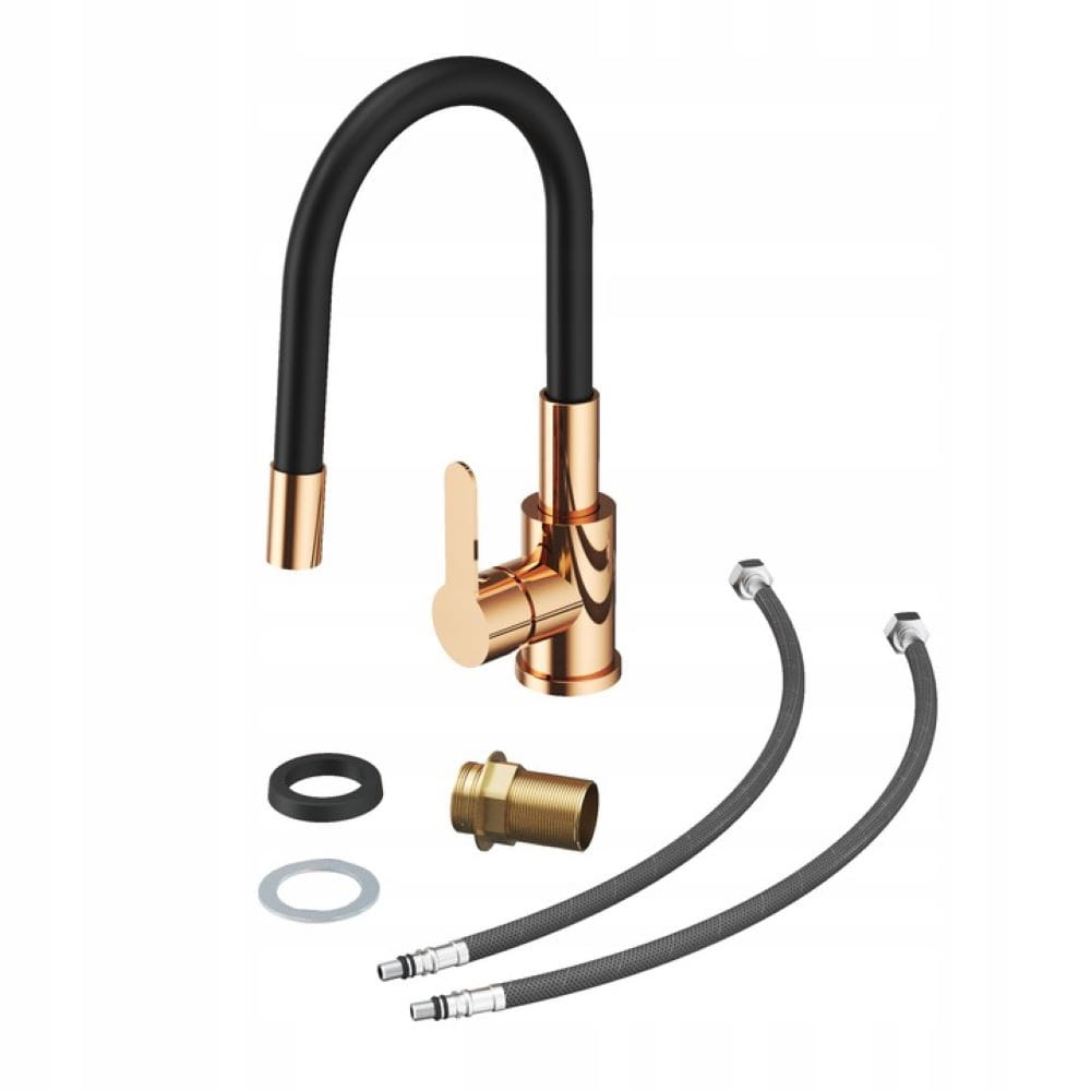 Bateria kuchenna EBRA różowe złoto wyciągana wylewka 2 rodzaje strumienia