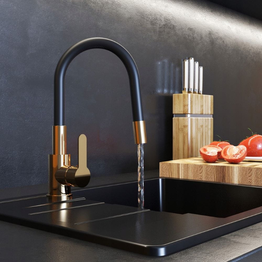 Bateria kuchenna Vetta elastyczna giętka wylewka wysoka do umywalki czarna