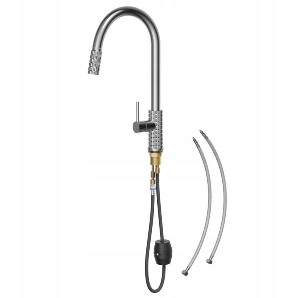 Bateria kuchenna trójdrożna elastyczny kran do filtra wody Fluo chrom