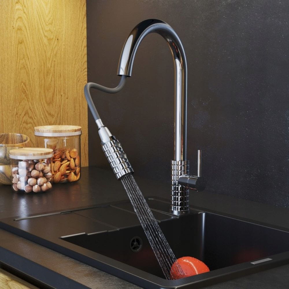 Bateria kuchenna Giro z wyciąganą wylewką czarna 3 strumienie wody