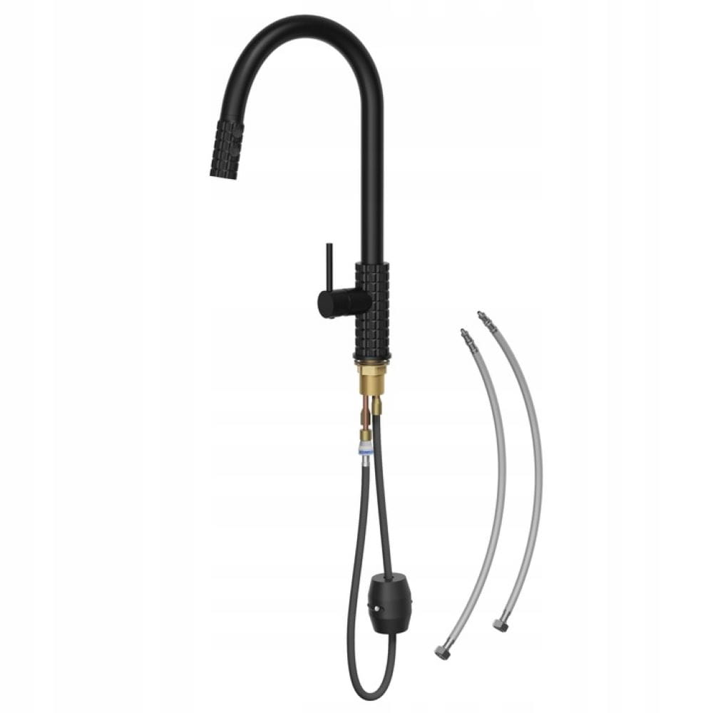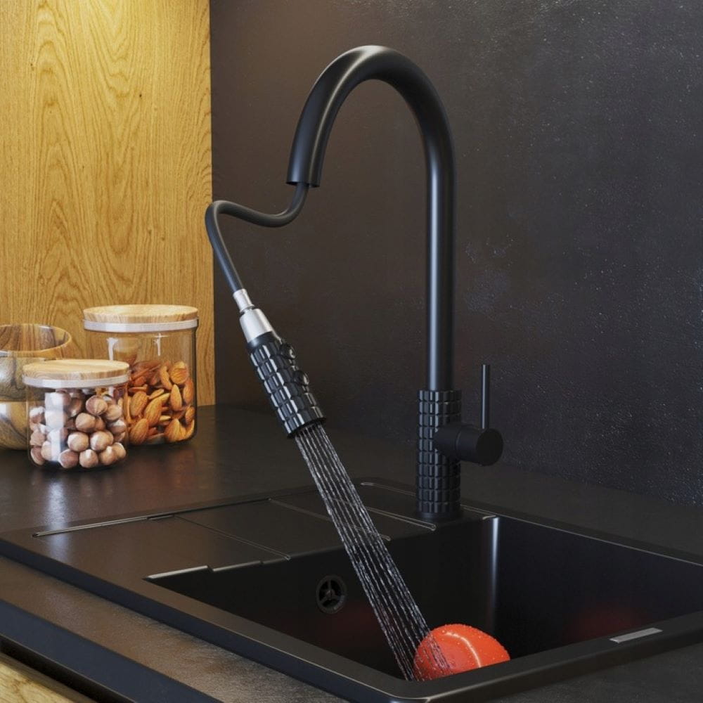 Bateria kuchenna Giro z wyciąganą wylewką czarna 3 strumienie wody