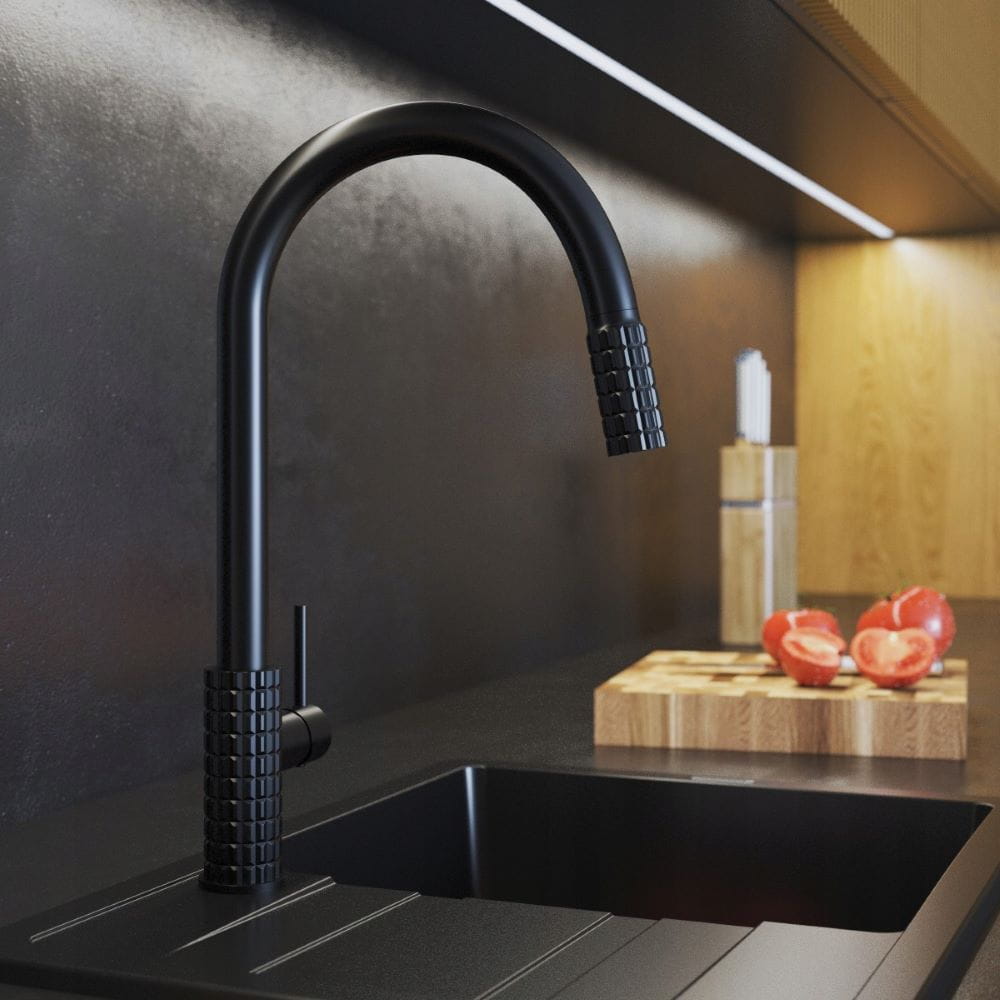 Retro czarna bateria kuchenna z wyciąganą wylewką
