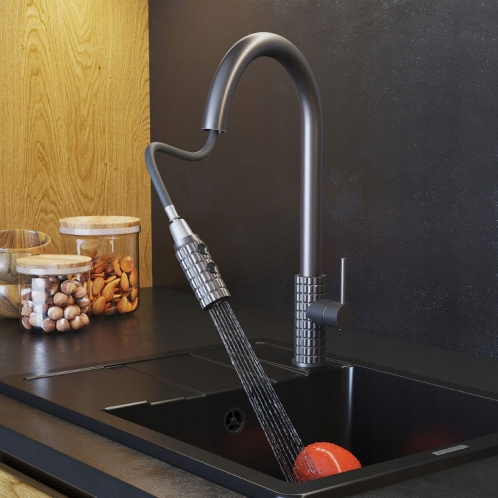 Bateria kuchenna Giro z wyciąganą wylewką czarna 3 strumienie wody