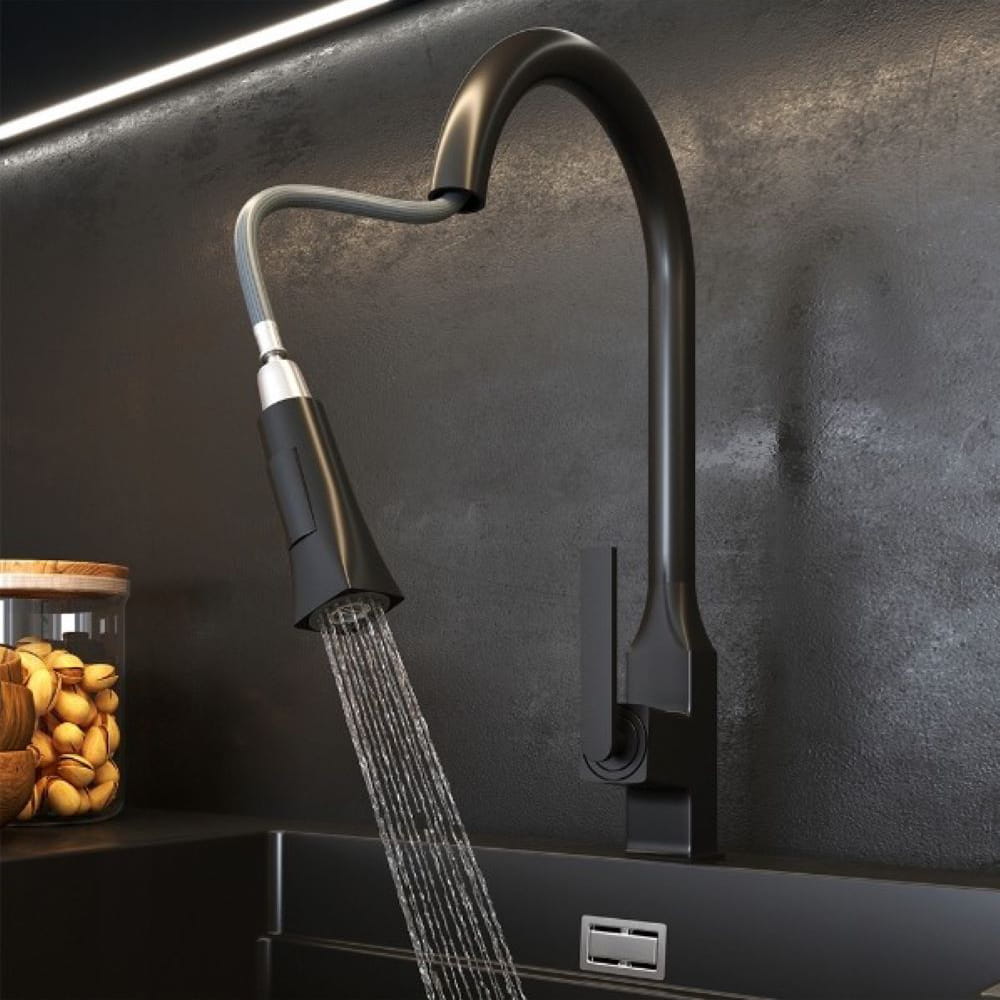Bateria kuchenna Giro z wyciąganą wylewką czarna 3 strumienie wody
