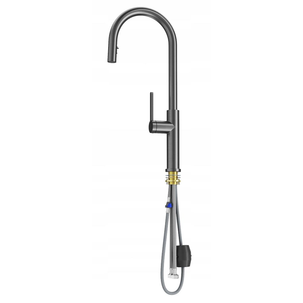 Bateria kuchenna z wyciąganą wylewką gun grey kran Prati