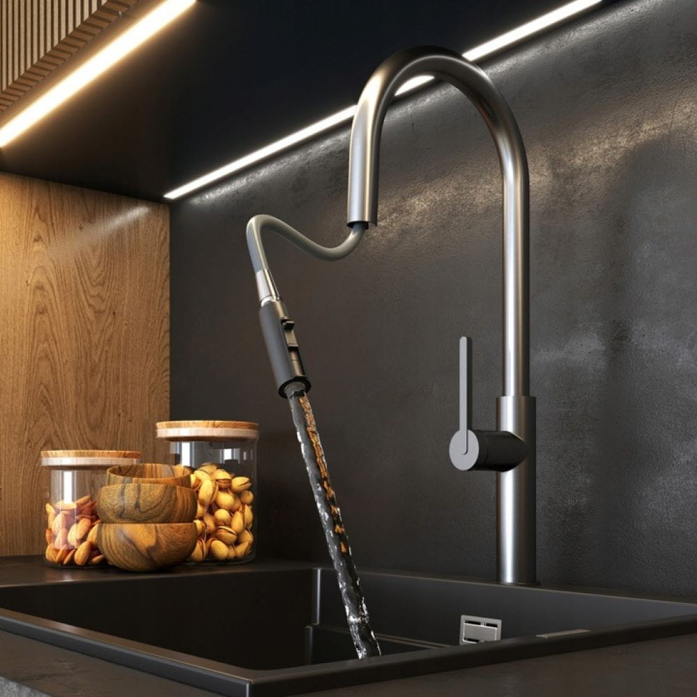 Prati to nowoczesny kran kuchenny, który dzięki minimalistycznej formie i ponadczasowej funkcjonalności, sprawdzi się zarówno w tradycyjnych, jak i nowatorskich przestrzeniach kuchennych. Bateria posiada wyciąganą, obrotową wylewkę, a także dwufunkcyjną słuchawkę (strumień standardowy bądź prysznic), które znacznie ułatwiają codzienne obowiązki kuchenne. Prosty, a zarazem elegancki design, długa, smukła wylewka i różnobarwna kolorystka tworzą uniwersalny produkt, który jest odpowiedzią na aktualne zapotrzebowanie Klienta. Głowica ceramiczna. Powłoka odporna na wysoką temperaturę i przebarwienia.