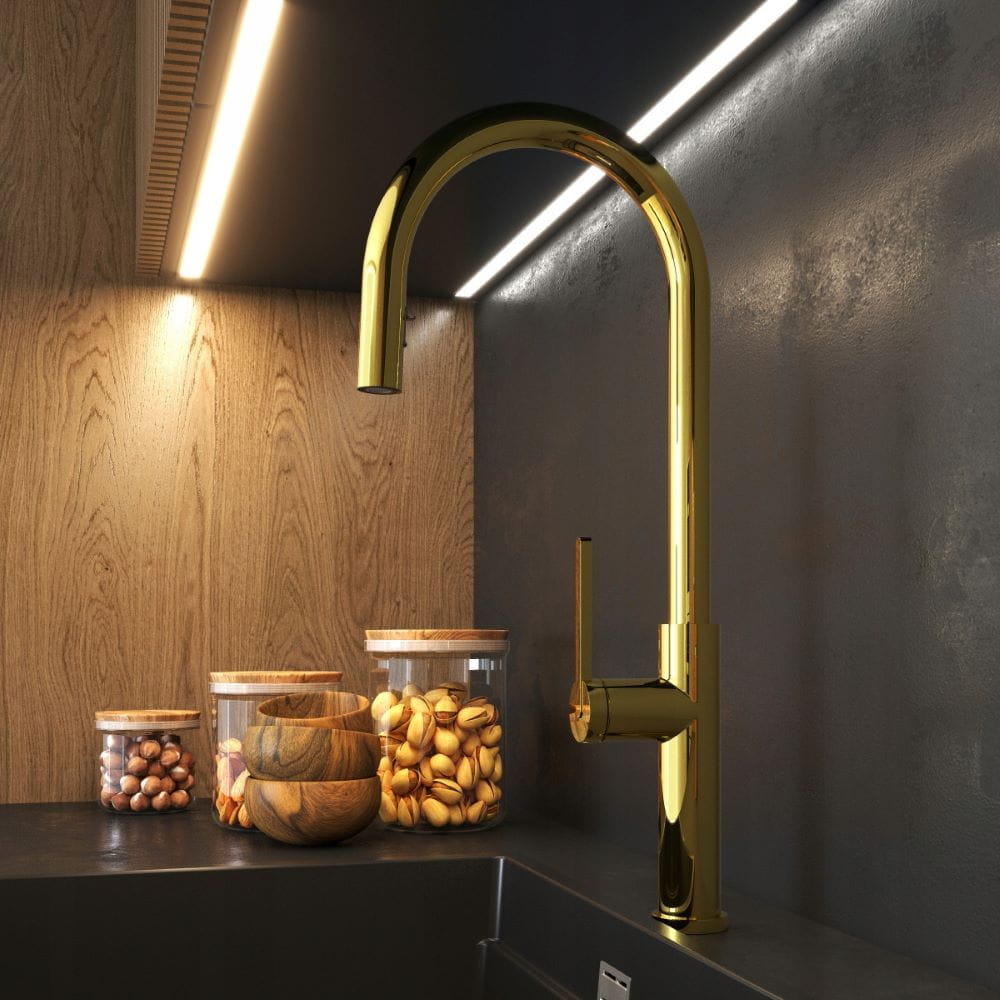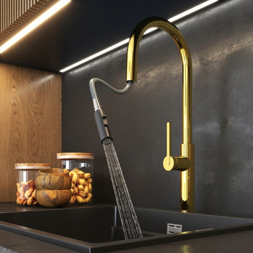 Bateria kuchenna z wyciąganą wylewką złota kran Prati