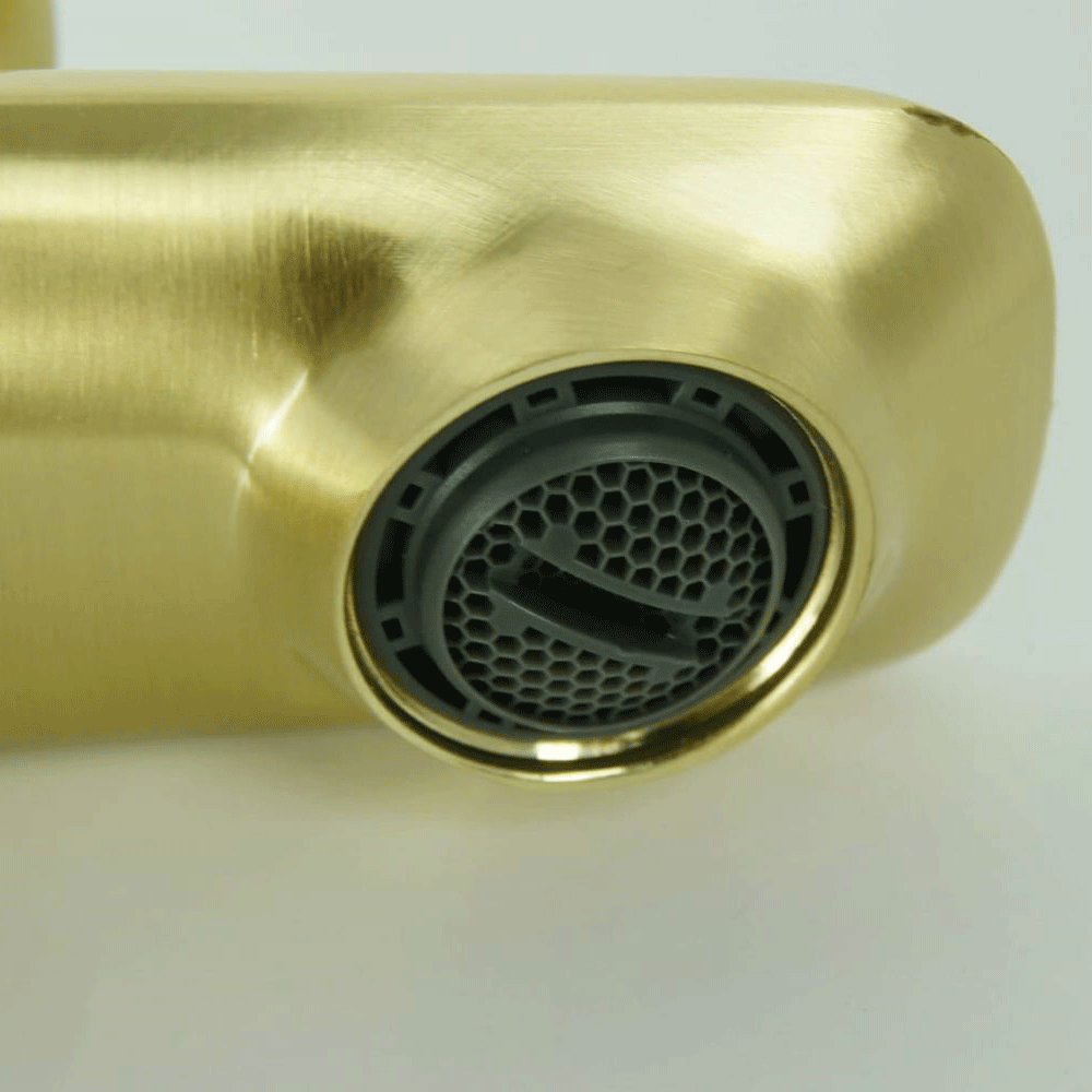 VERO to nowoczesna bateria umywalkowa w kolorze szczotkowanego złota. Umywalkowa bateria posiada uchwyt do bezpiecznej regulacji temperatury. Wyróżnia ją wykończenie w kolorze szczotkowanego złota. Trwałe materiały powodują iż bateria jest łatwa w czyszczeniu oraz odporna na ścieranie.