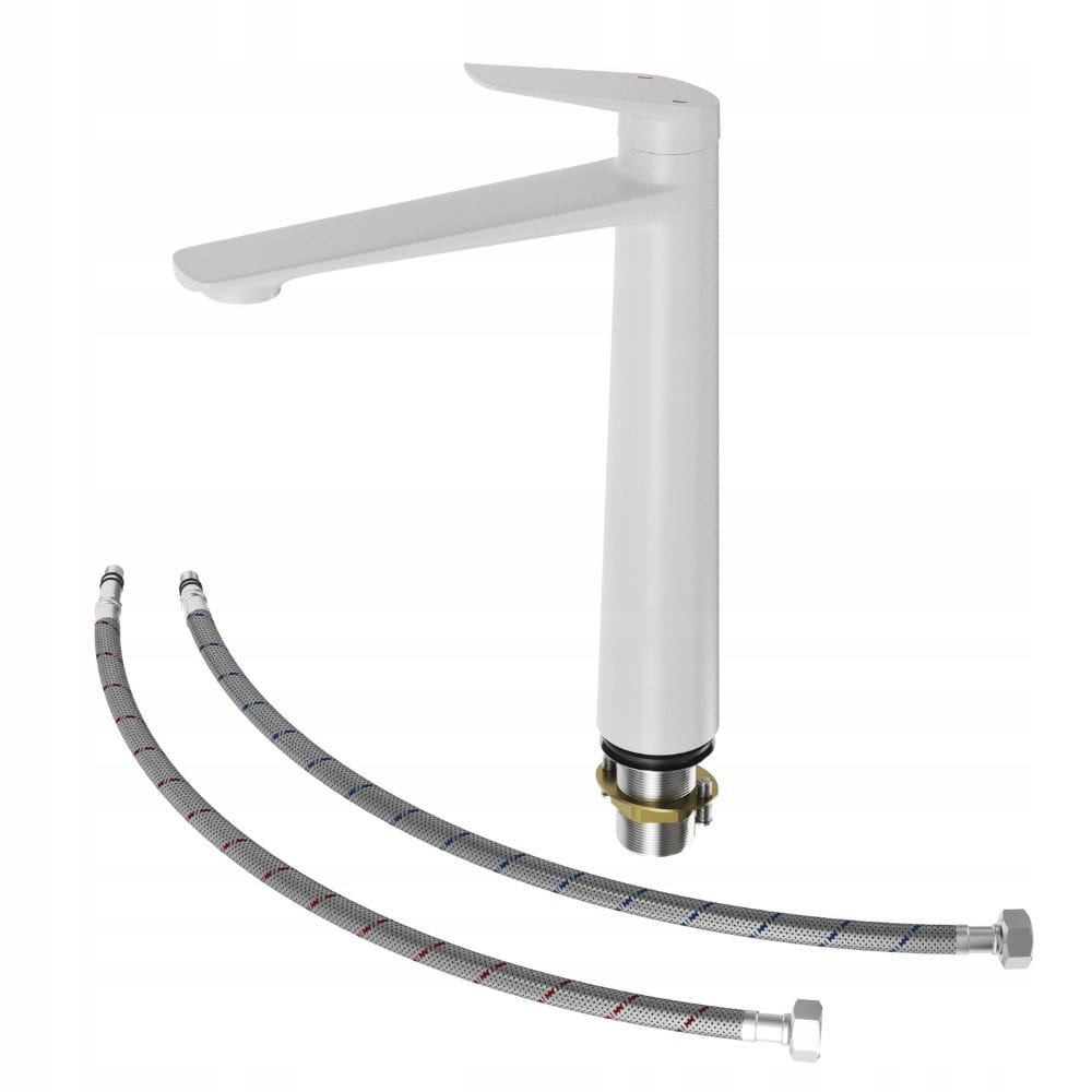 Bateria umywalkowa biała wysoka łazienkowa mosiężna stojąca kran Nave