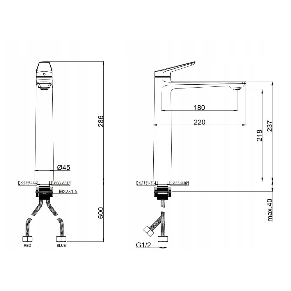 Wysokość od podstawy do perlatora 218 mm