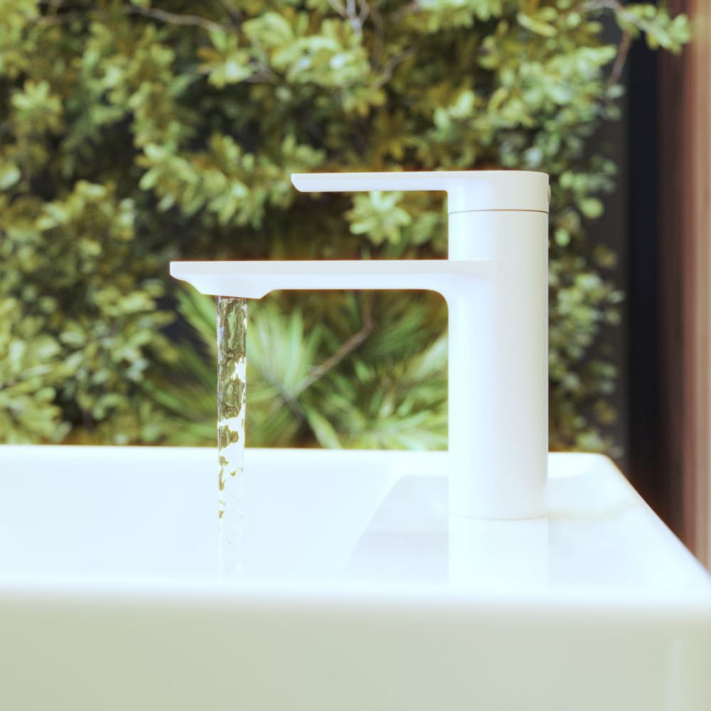 Bateria umywalkowa niska stojąca biała Cabo do łazienki