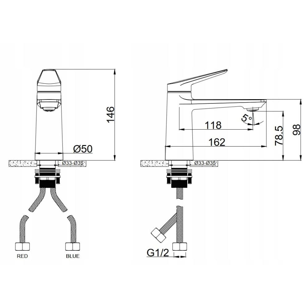 Zasięg wylewki od środka baterii 118 mm