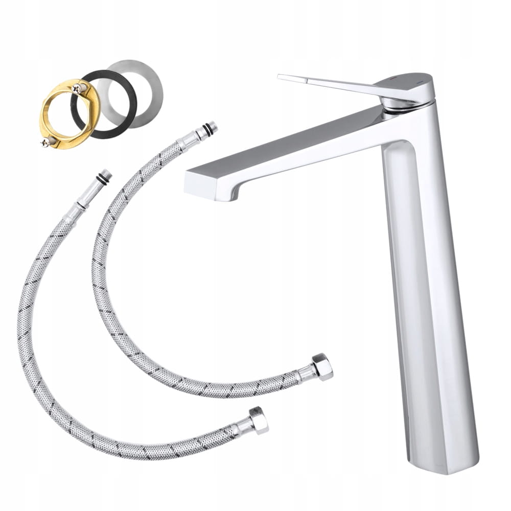 Bateria umywalkowa srebrna wysoka łazienkowa mosiężna chrom kran Selva